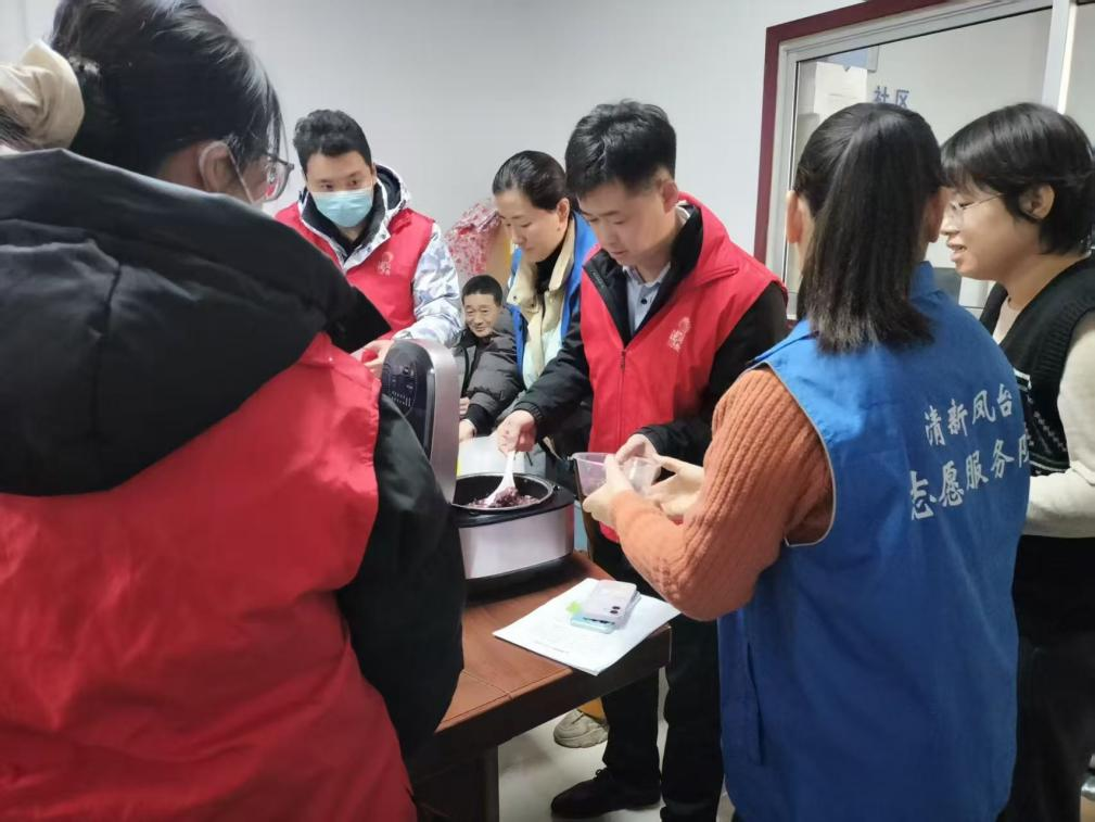 志愿者們和社區(qū)工作人員提前準(zhǔn)備了由糯米、黑米、花生、紅豆、紅棗等8種原料熬制成的臘八粥,和來參加茶話會的老人們圍桌而坐,談?wù)摾先藗儍簳r的臘八記憶,席間歡聲笑語,氣氛溫馨?;顒咏Y(jié)束后,工作人員與志愿者們下沉到網(wǎng)格里,將香甜的臘八粥送到老黨員手中,在寒冬中為他們獻上一份溫暖。