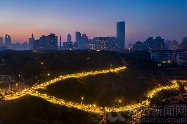 到了傍晚,公園的棧道兩旁亮起燈光,蜿蜒曲折,又讓身處其間的人們感覺(jué)到溫馨浪漫。很多年輕人紛紛來(lái)到這里拍照,并上傳各種社交媒體平臺(tái),使這里成為目前青島最受歡迎的網(wǎng)紅打卡地之一。