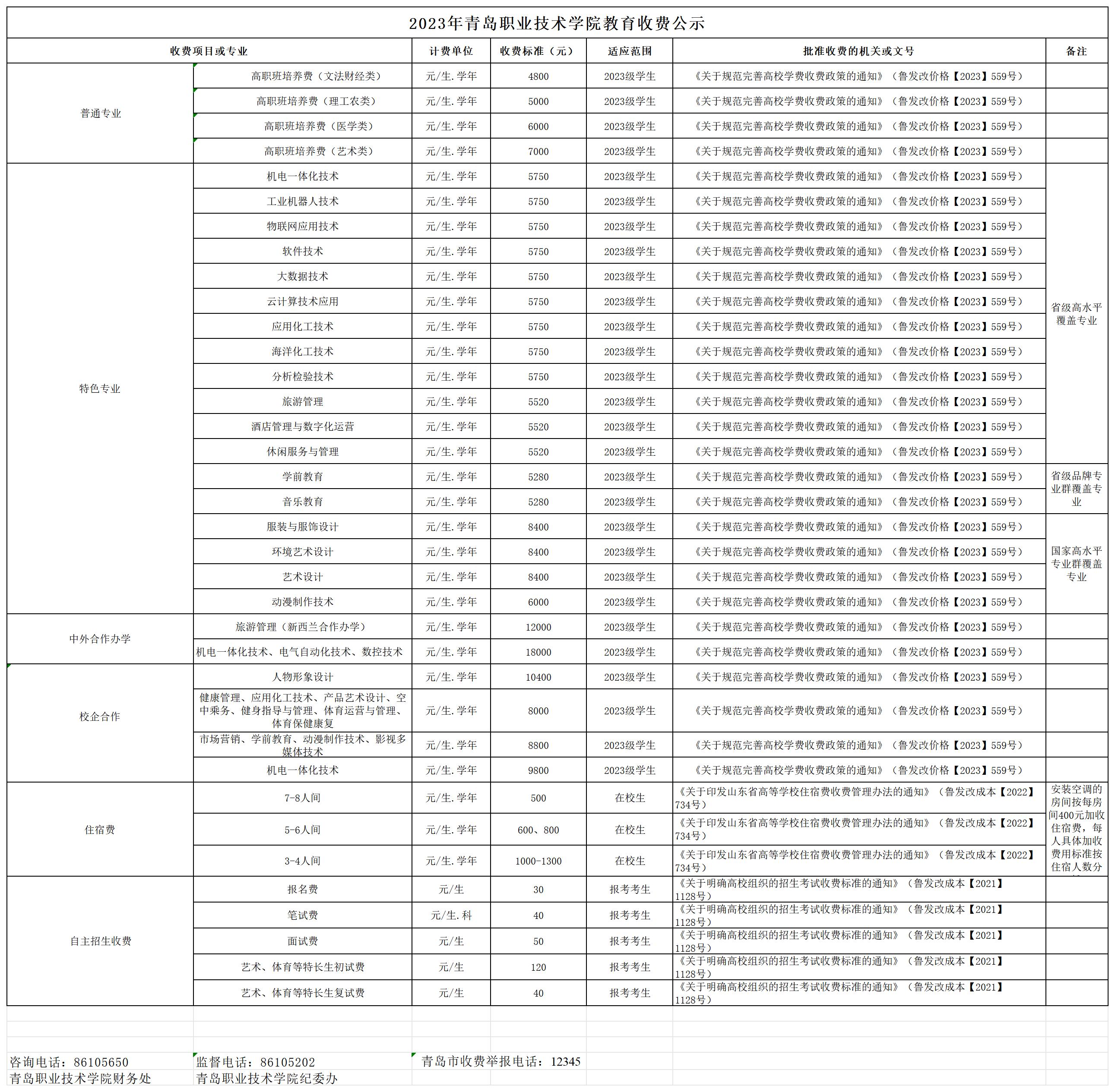 青島職業(yè)技術(shù)學(xué)院2023年教育收費公示