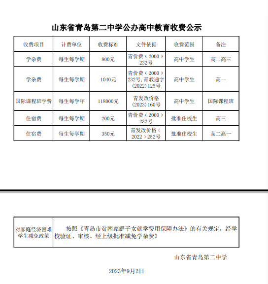 2023年山東省青島第二中學(xué)公辦高中教育收費公示.pdf