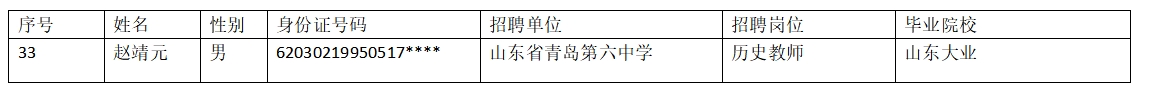 山東省青島第六中學(xué)關(guān)于選聘2021屆優(yōu)秀高校畢業(yè)生人員名單公示