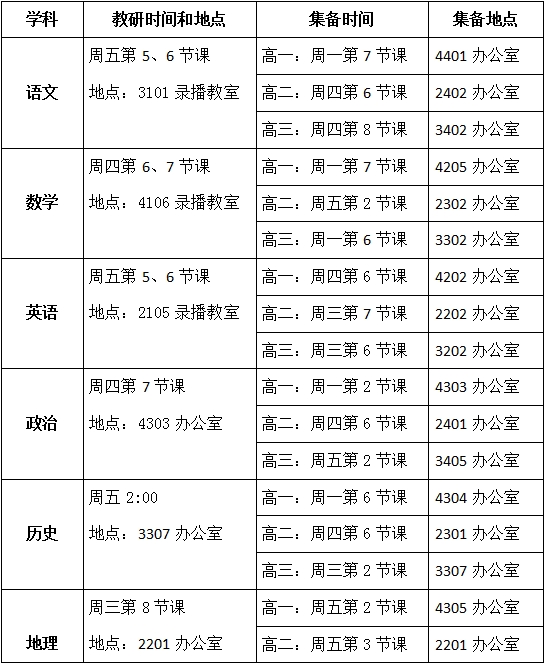 山東青島第六中學(xué)2023—2024學(xué)年度第二學(xué)期學(xué)科教研和集備活動安排