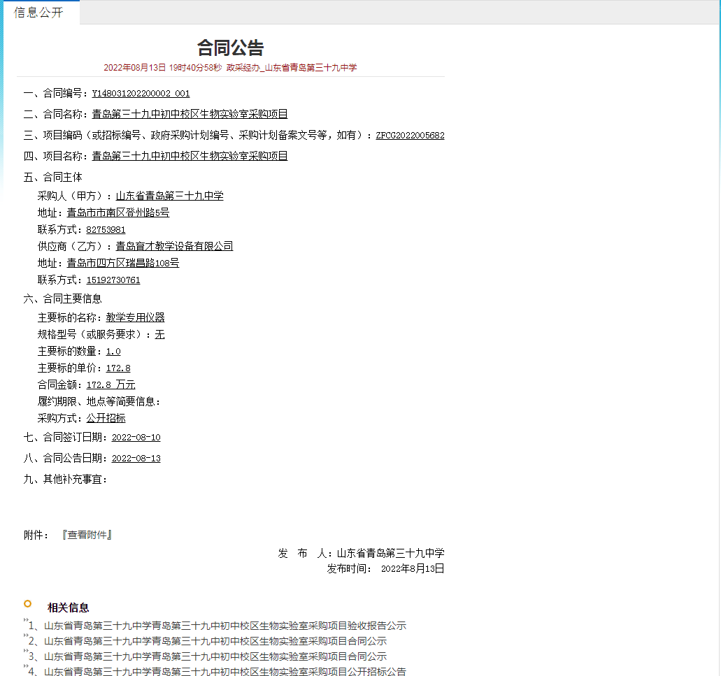 2022青島第三十九中初中校區(qū)生物實驗室采購項目公示.pdf