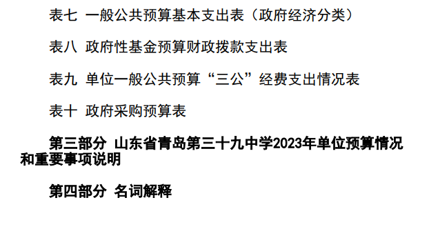 山東省青島第三十九中學(xué)2023年單位預(yù)算