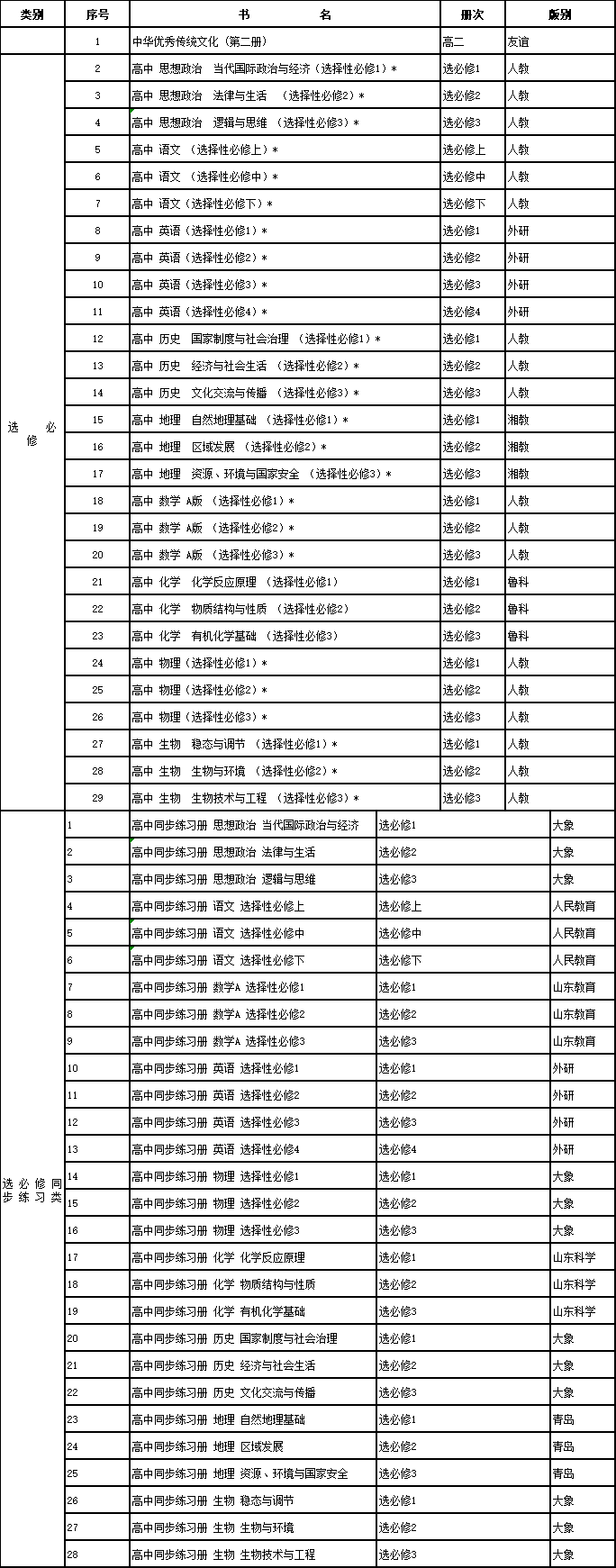 青島市2022學(xué)年秋季普通高中教育教學(xué)用書(shū)目錄 (根據(jù)2017年版課程標(biāo)準(zhǔn)修訂)