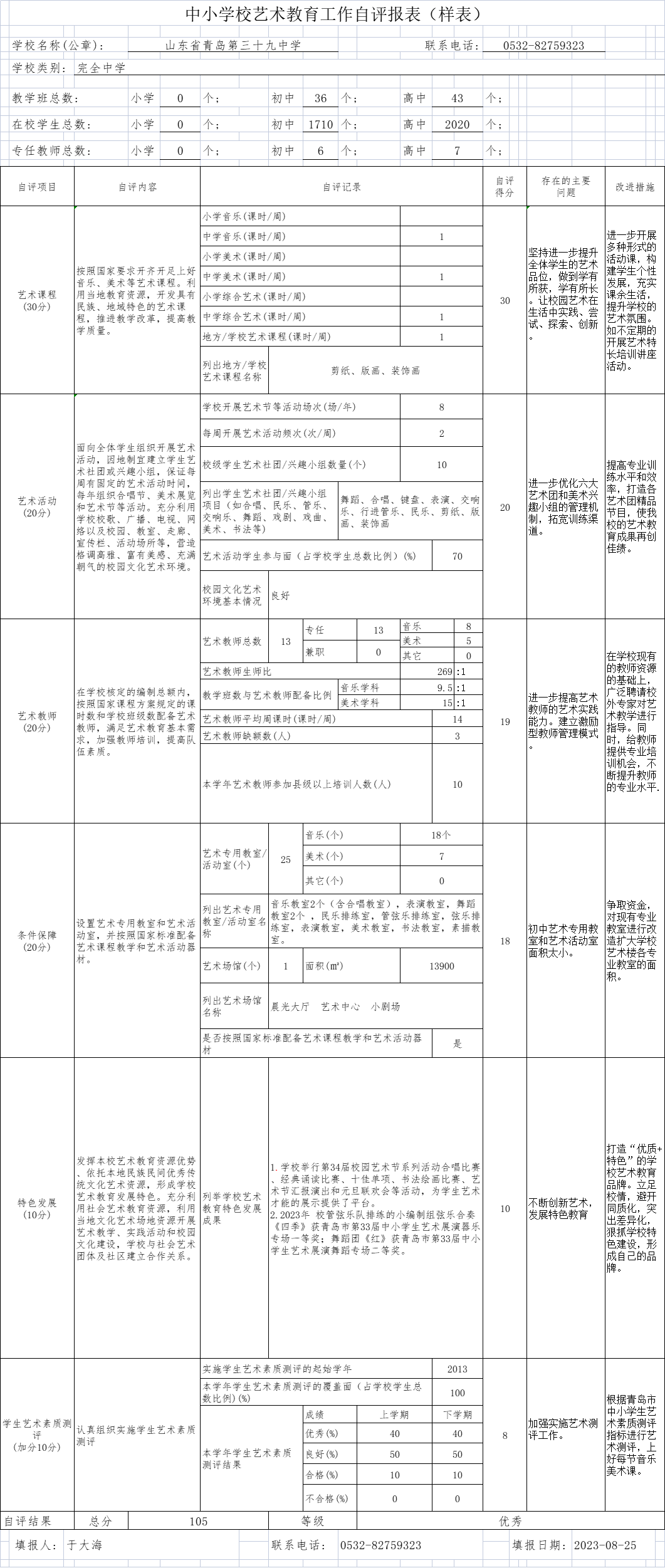 青島三十九中2022-2023藝術(shù)工作自評表