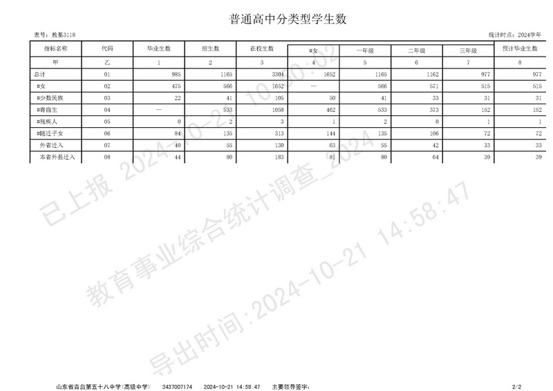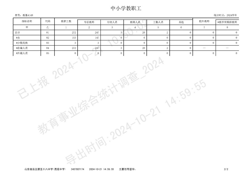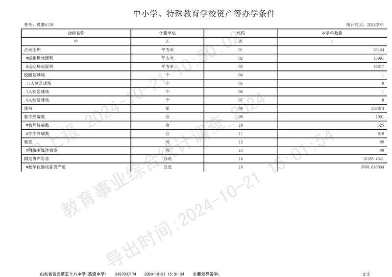青島五十八中2024年在校師生、辦學條件數(shù)據(jù)