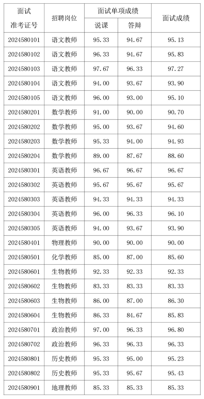 根據(jù)《青島市教育局直屬學(xué)校選聘2025屆優(yōu)秀師范類畢業(yè)生簡章》規(guī)定,現(xiàn)將12月10日已全部結(jié)束的招聘崗位面試成績予以公布。