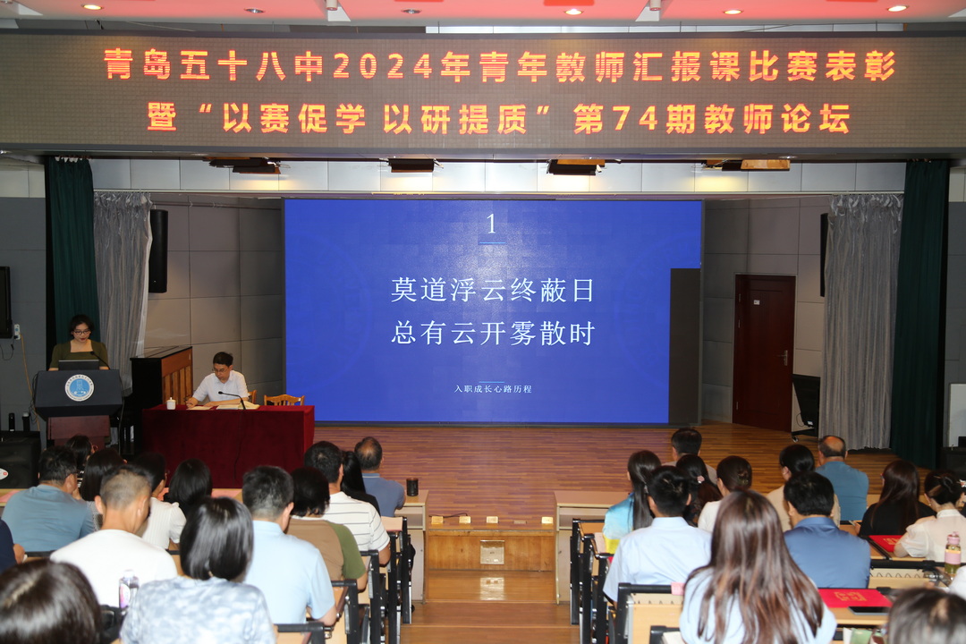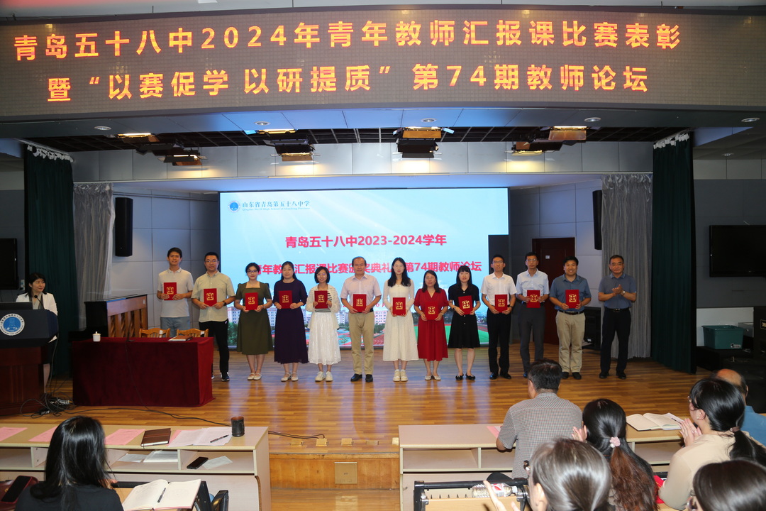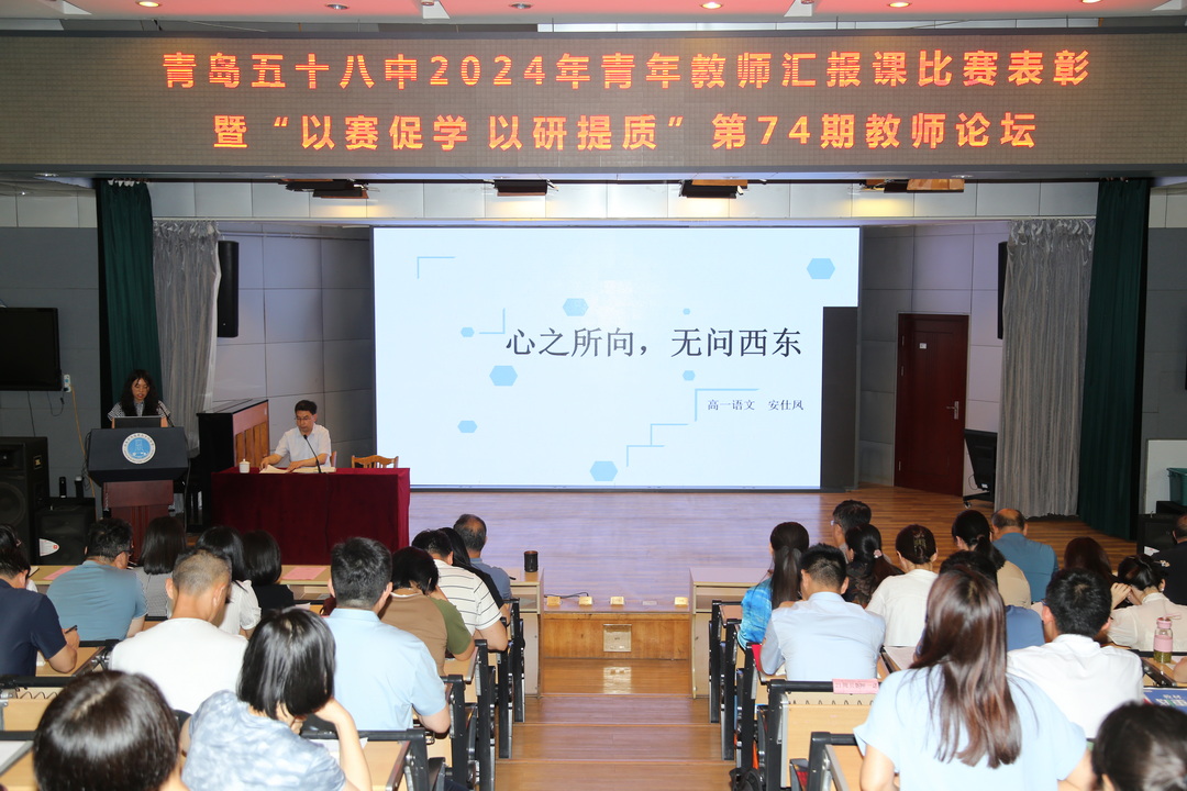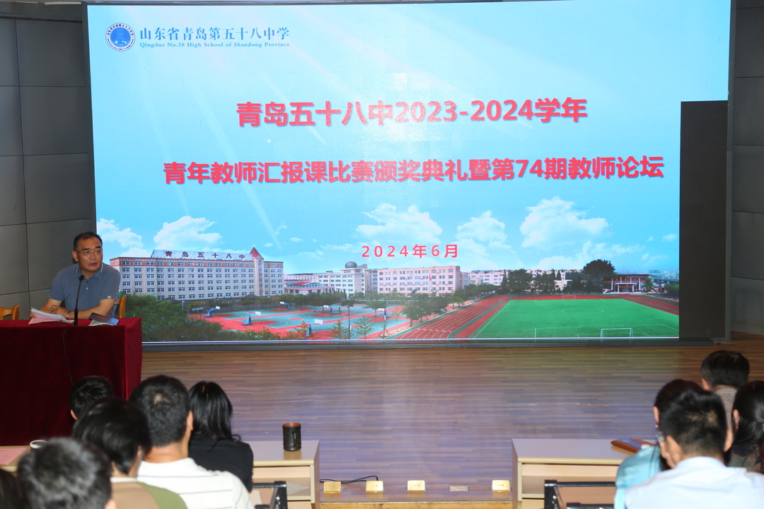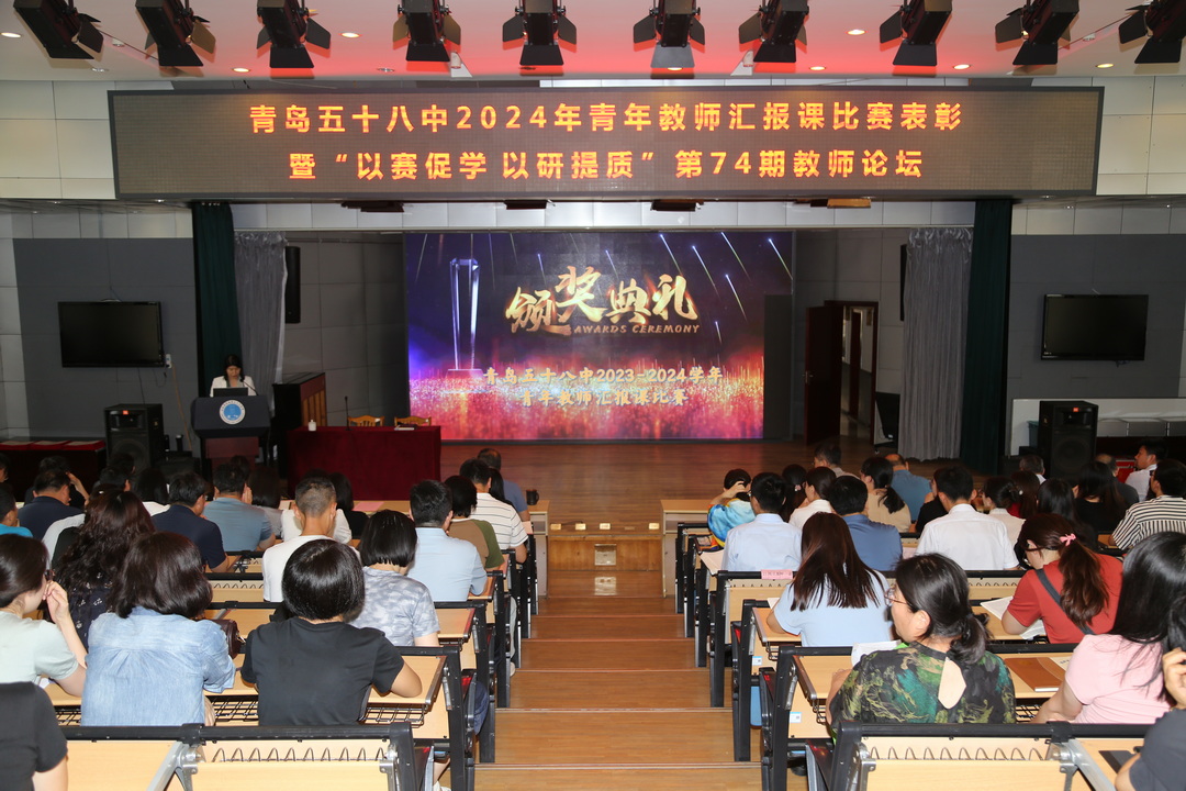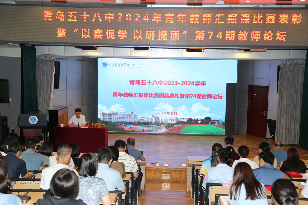 6月20日下午,青島五十八中2024年青年教師基本功比賽表彰會暨“以賽促學 強課提質(zhì)”第74期教師論壇在學校報告廳舉行,會議由封強副校長主持,學校全體教職工參會。