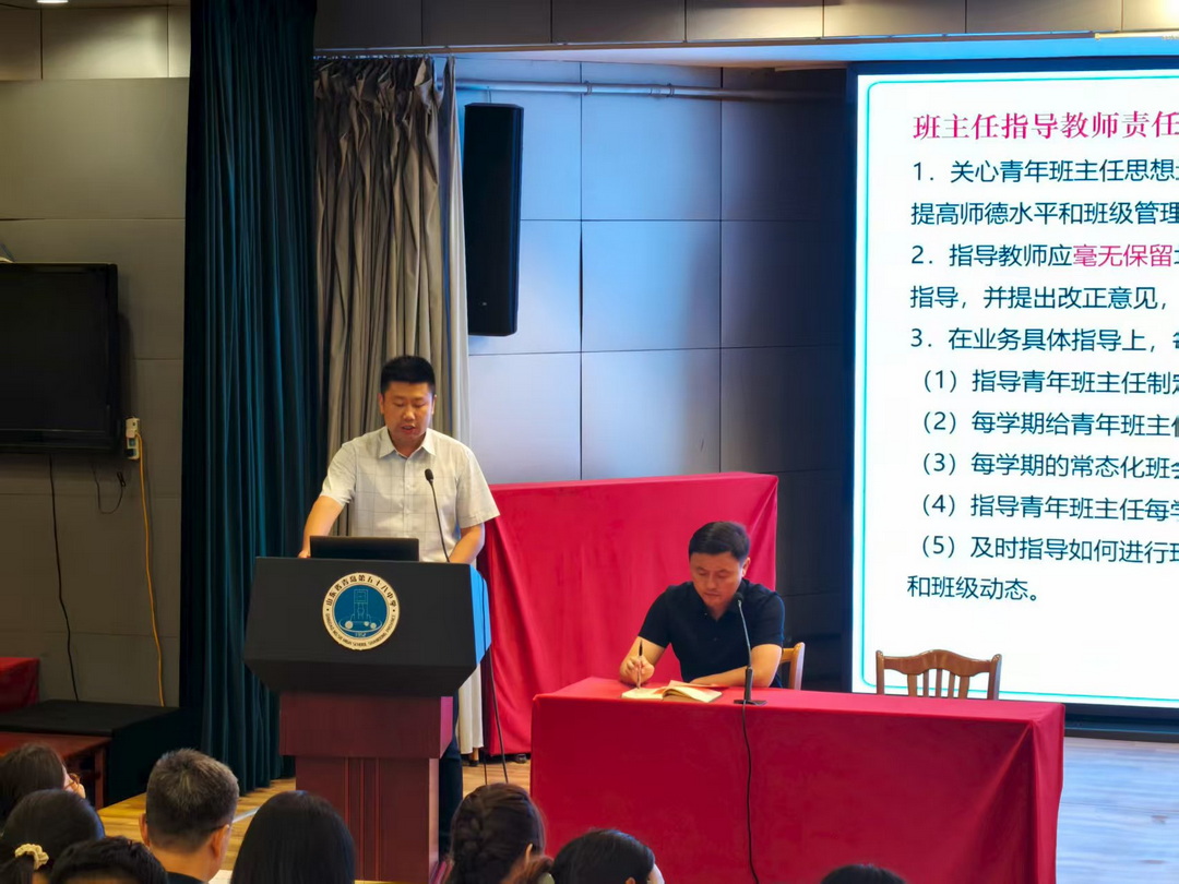 宋麗瑄委員首先詳細(xì)解讀了我校青年教師培養(yǎng)目標(biāo)——“三成”計(jì)劃,即“一年成型、三年成熟、五年成才”,并對(duì)青年教師提出了殷切期望。隨后,她宣讀了教學(xué)業(yè)務(wù)指導(dǎo)的具體要求,明確了師徒雙方在教學(xué)方面的責(zé)任與義務(wù)。宋委員引用“新竹高于舊竹枝,全憑老干為扶持”這一詩(shī)句,生動(dòng)詮釋了業(yè)務(wù)指導(dǎo)教師在我們專業(yè)成長(zhǎng)中所起到的支撐與引領(lǐng)作用。她鼓勵(lì)青年教師珍惜學(xué)校搭建的成長(zhǎng)平臺(tái),虛心求教,積極踐行教育家精神,在師父的悉心指導(dǎo)下不斷提升業(yè)務(wù)能力,努力成長(zhǎng)為一名優(yōu)秀的人民教師。