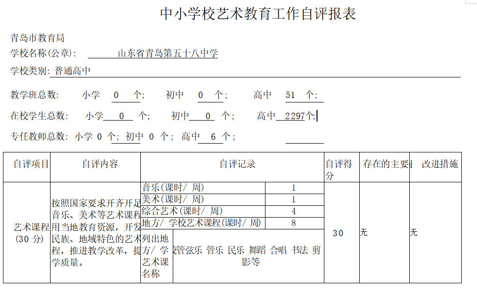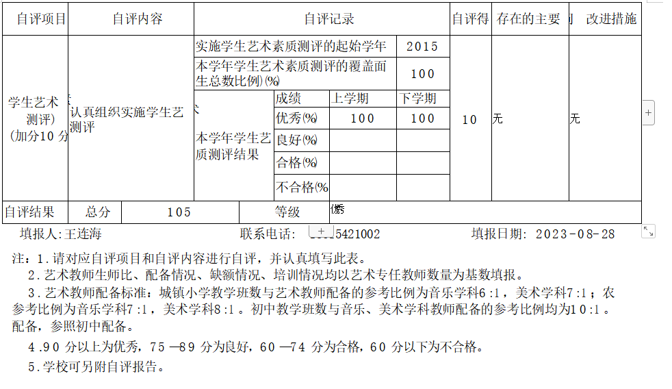 2023年藝術(shù)教育自評(píng)結(jié)果