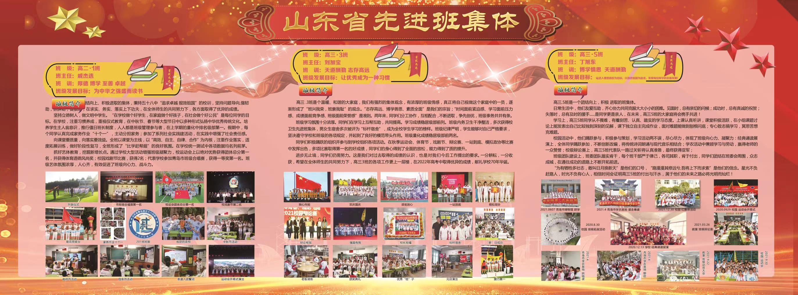山東省先進(jìn)班集體: 高二1班(班主任:戚杰選)