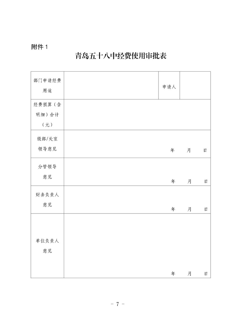 7.《青島五十八中經(jīng)費(fèi)使用審批表》(附件1)。