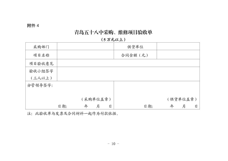 6.《青島五十八中采購項目驗收單》(附件4)。