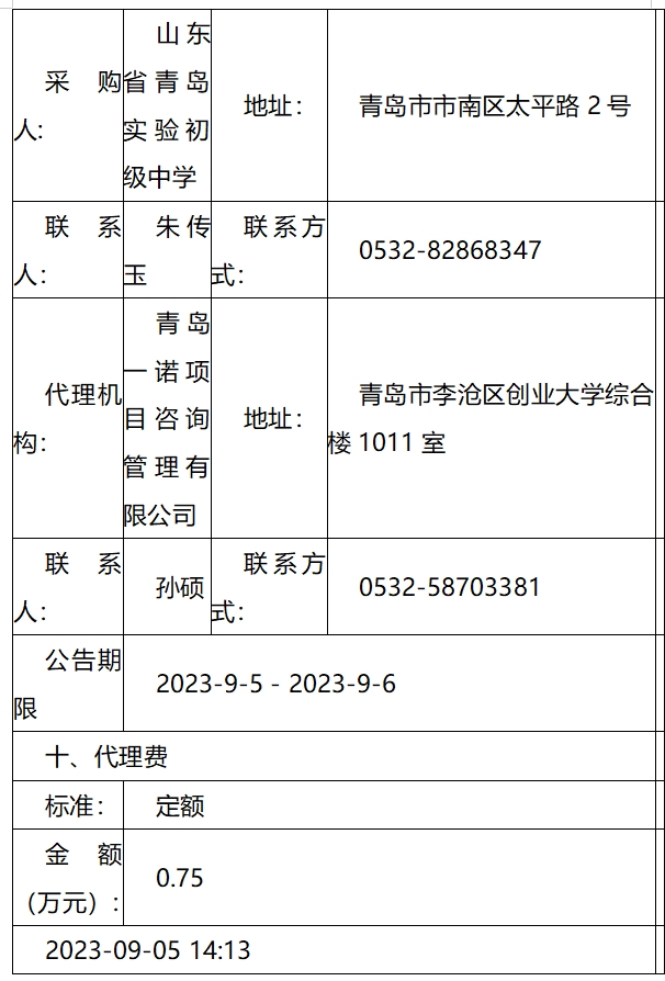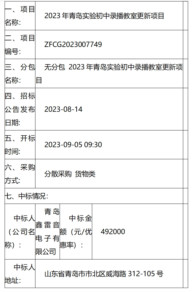 山東省青島實(shí)驗(yàn)初級中學(xué)2023年青島實(shí)驗(yàn)初中錄播教室更新項目中標(biāo)公告