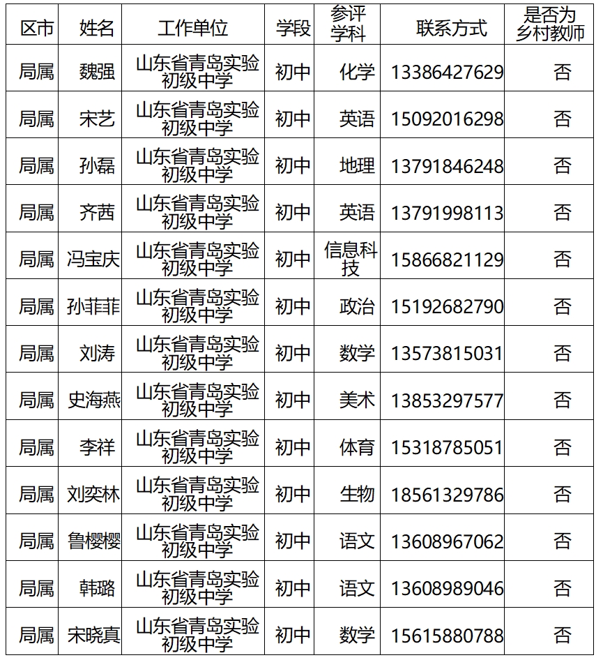 根據(jù)《青島市教育局辦公室關(guān)于評選青島市教學能手的通知》 (青教辦字〔2023〕22號)文件要求,經(jīng)過各教研組推薦,先將擬參加2023年教學能手申報的名單公示如下: