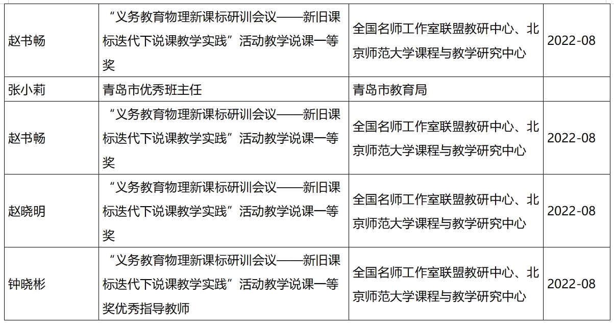 2021-2022學年青島實驗初中教師教學成果情況統(tǒng)計