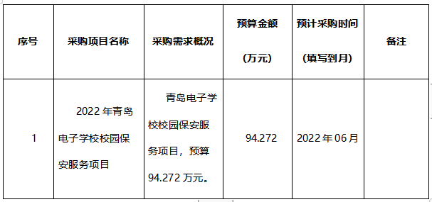 為便于供應(yīng)商及時了解政府采購信息,根據(jù)《財政部關(guān)于開展政府采購意向公開工作的通知》(財庫〔2020〕10號)等有關(guān)規(guī)定,現(xiàn)將 青島電子學(xué)校 2022年 06(至)06 月采購意向公開如下: