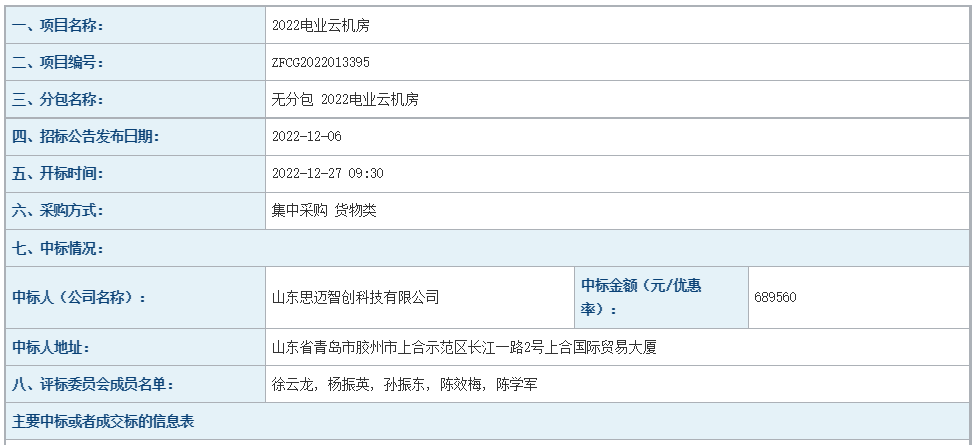 青島電子學(xué)校 2022年電業(yè)云機房中標(biāo)公告