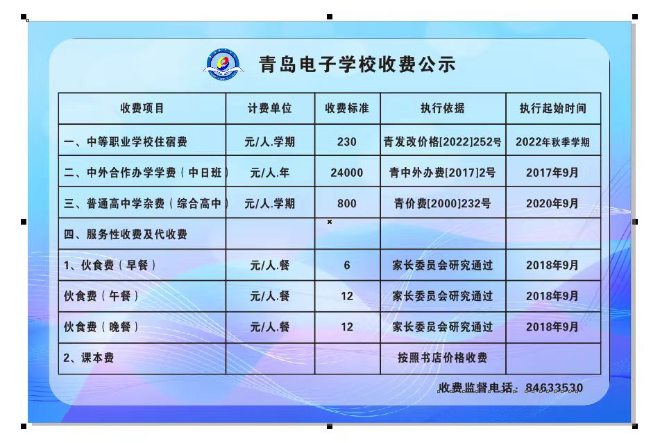 青島電子學(xué)校 收費(fèi)信息