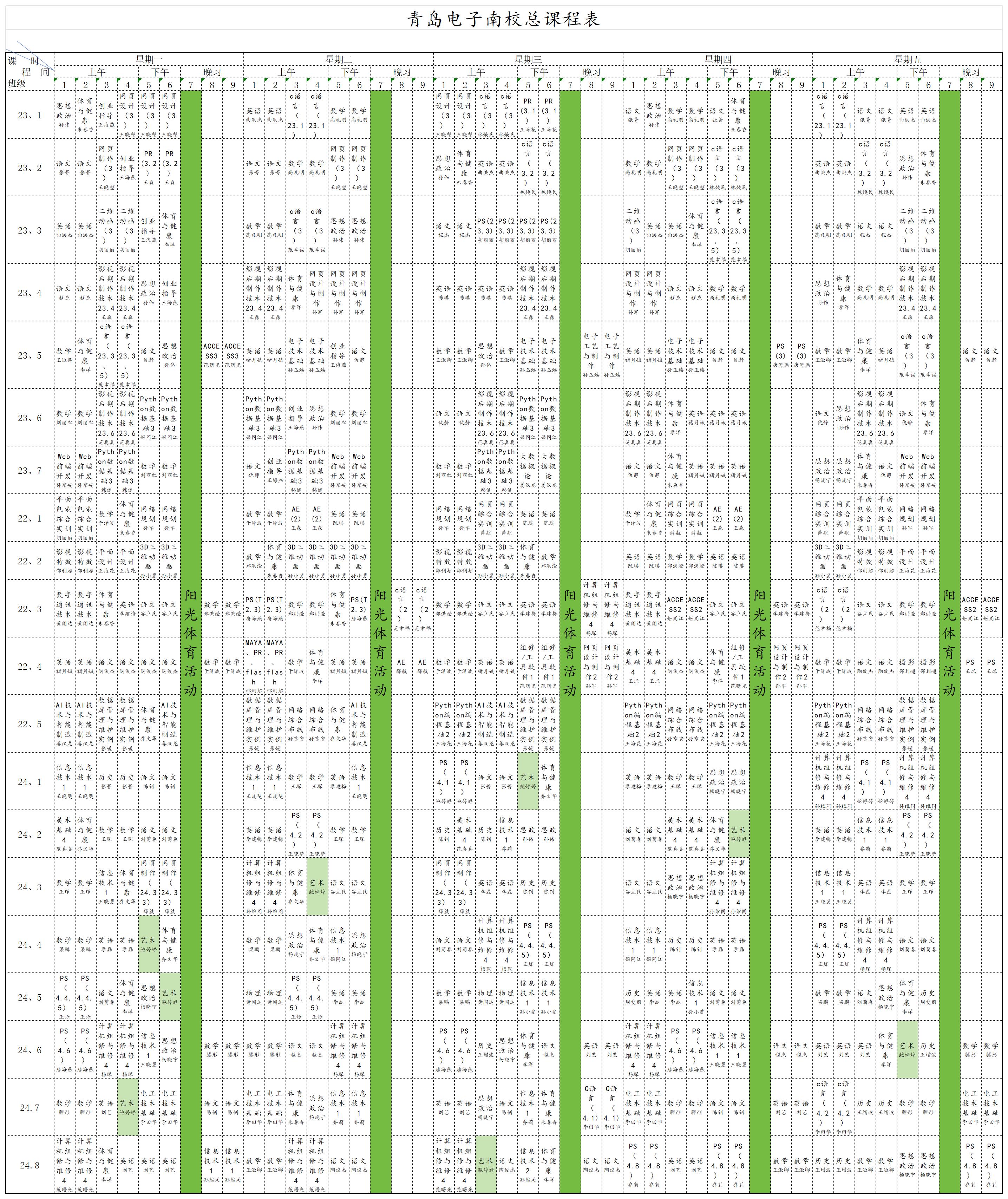 青島電子學(xué)校 2024-2025學(xué)年第一學(xué)期總課表(市南校區(qū))