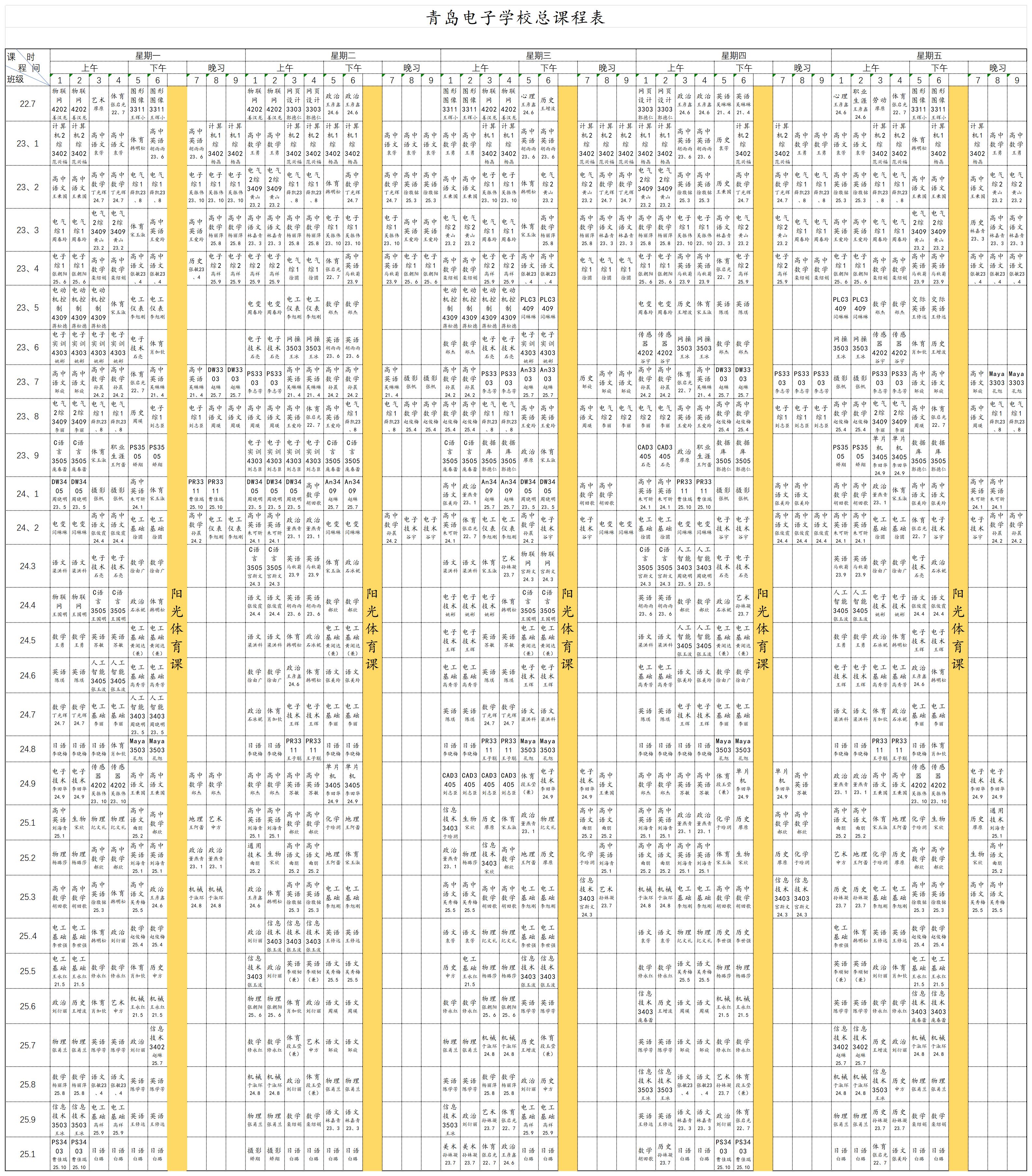 青島電子學(xué)校 2024-2025學(xué)年第二學(xué)期總課程表(臺東校區(qū))