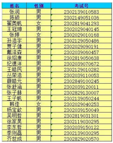 祝賀以下同學考入青島電子學校。請被錄取的同學于7月26日(周三)上午9:00到市北校區(qū)(市北區(qū)臺東一路118號)報到并領取錄取通知書,報到詳情見本公眾號發(fā)布的《青島電子學校2023級報到須知(職普融通、三二連讀五年貫通和職業(yè)中專)》。