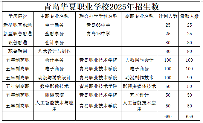 青島華夏職業(yè)學(xué)校2025年招生數(shù)