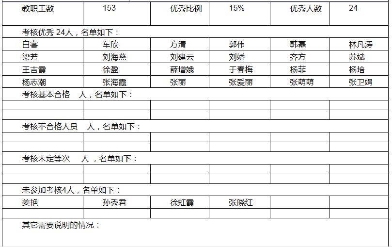 說明:未在此匯總表中出現(xiàn)的人員是年度考核為“合格”人員。