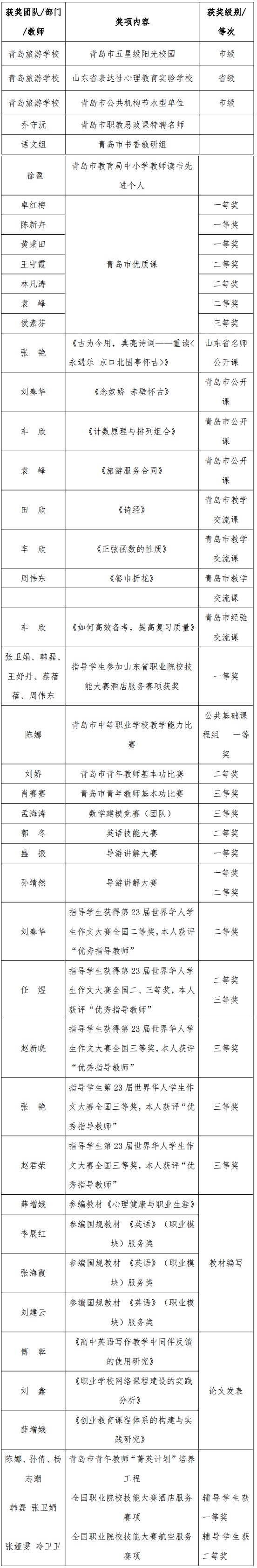 青島旅游學(xué)校 2023 年度教師教學(xué)獲獎情況匯總