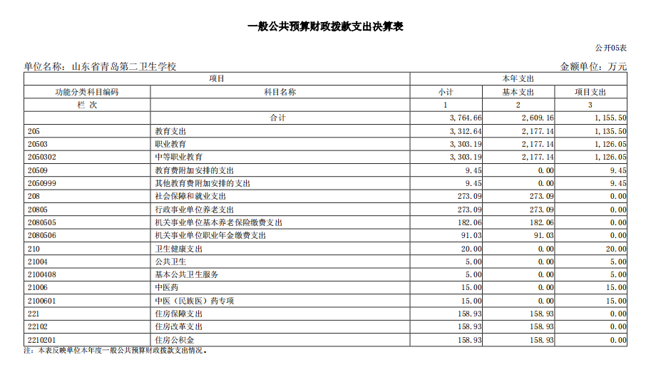 五、 一般公共預(yù)算財(cái)政撥款支出決算表