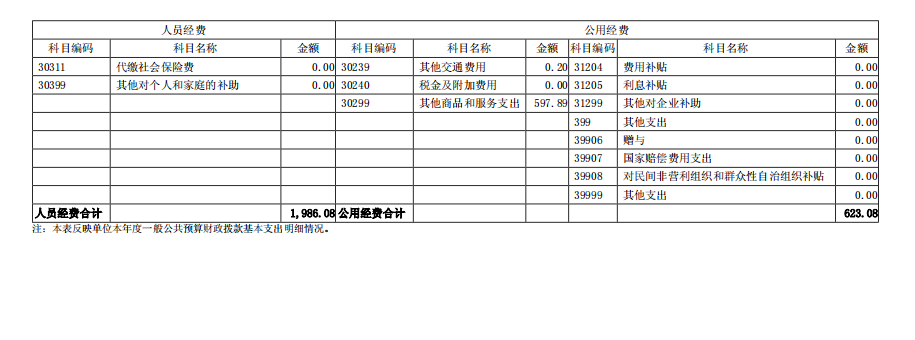 人員經(jīng)費(fèi)1,986.08萬元,主要包括:基本工資、津貼補(bǔ)貼、 績效工資、機(jī)關(guān)事業(yè)單位基本養(yǎng)老保險(xiǎn)繳費(fèi)、職業(yè)年金繳費(fèi)、職 工基本醫(yī)療保險(xiǎn)繳費(fèi)、其他社會(huì)保障繳費(fèi)、住房公積金、其他工資福利支出、離休費(fèi)、退休費(fèi)、醫(yī)療費(fèi)補(bǔ)助。公用經(jīng)費(fèi)623.08萬元,主要包括:辦公費(fèi)、差旅費(fèi)、培訓(xùn)費(fèi)、專用材料費(fèi)、勞務(wù)費(fèi)、工會(huì)經(jīng)費(fèi)、其他交通費(fèi)用、其他商品和服務(wù)支出、辦公設(shè)備購置。