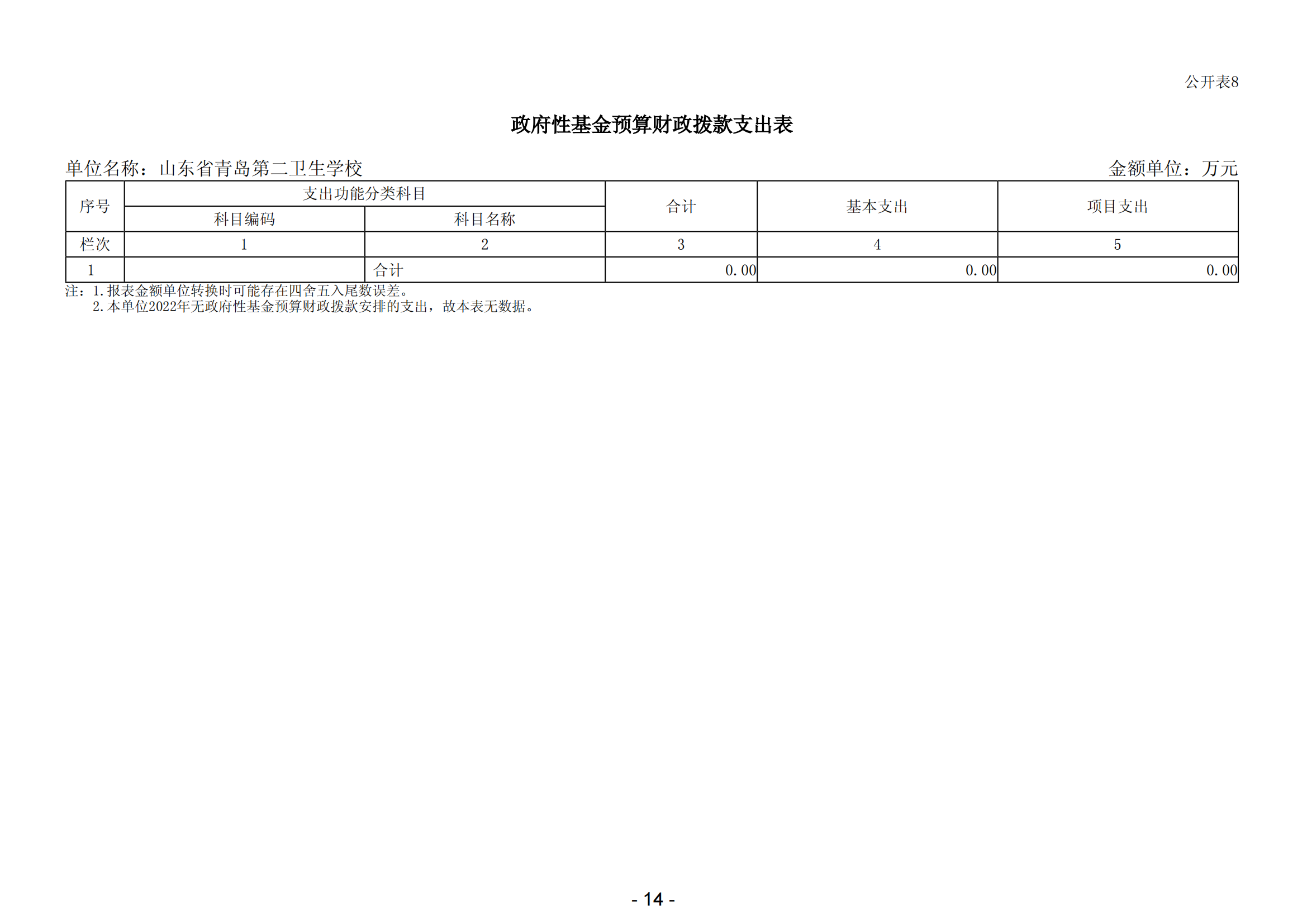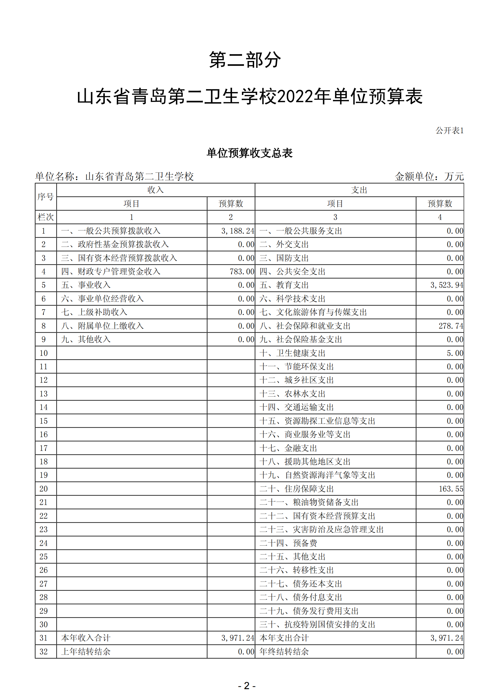 第二部分 山東省青島第二衛(wèi)生學(xué)校2022年單位預(yù)算表
