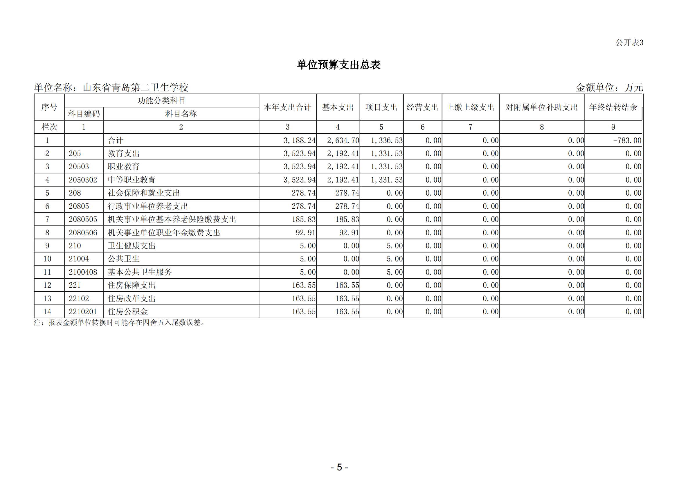表三 單位預(yù)算支出總表