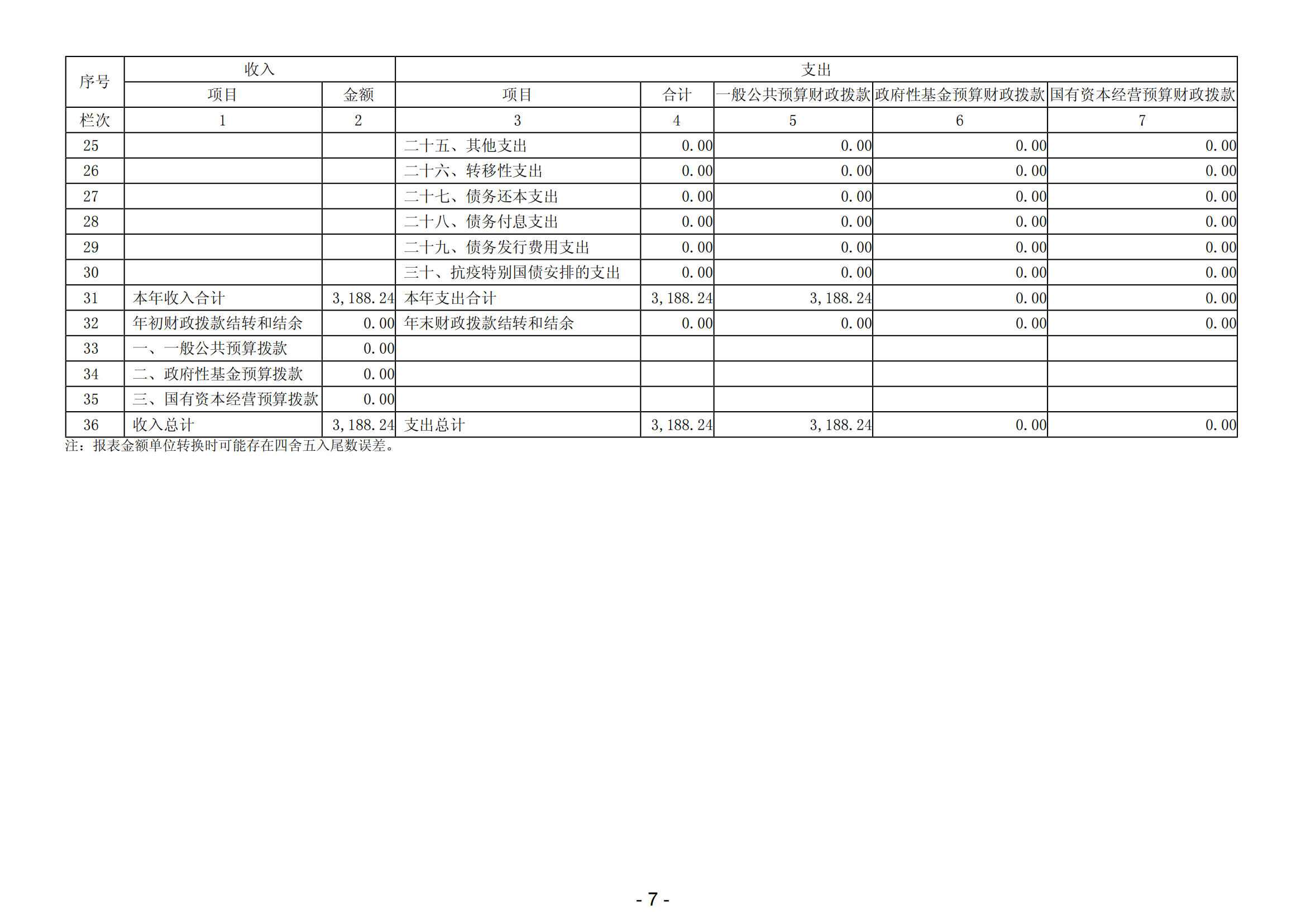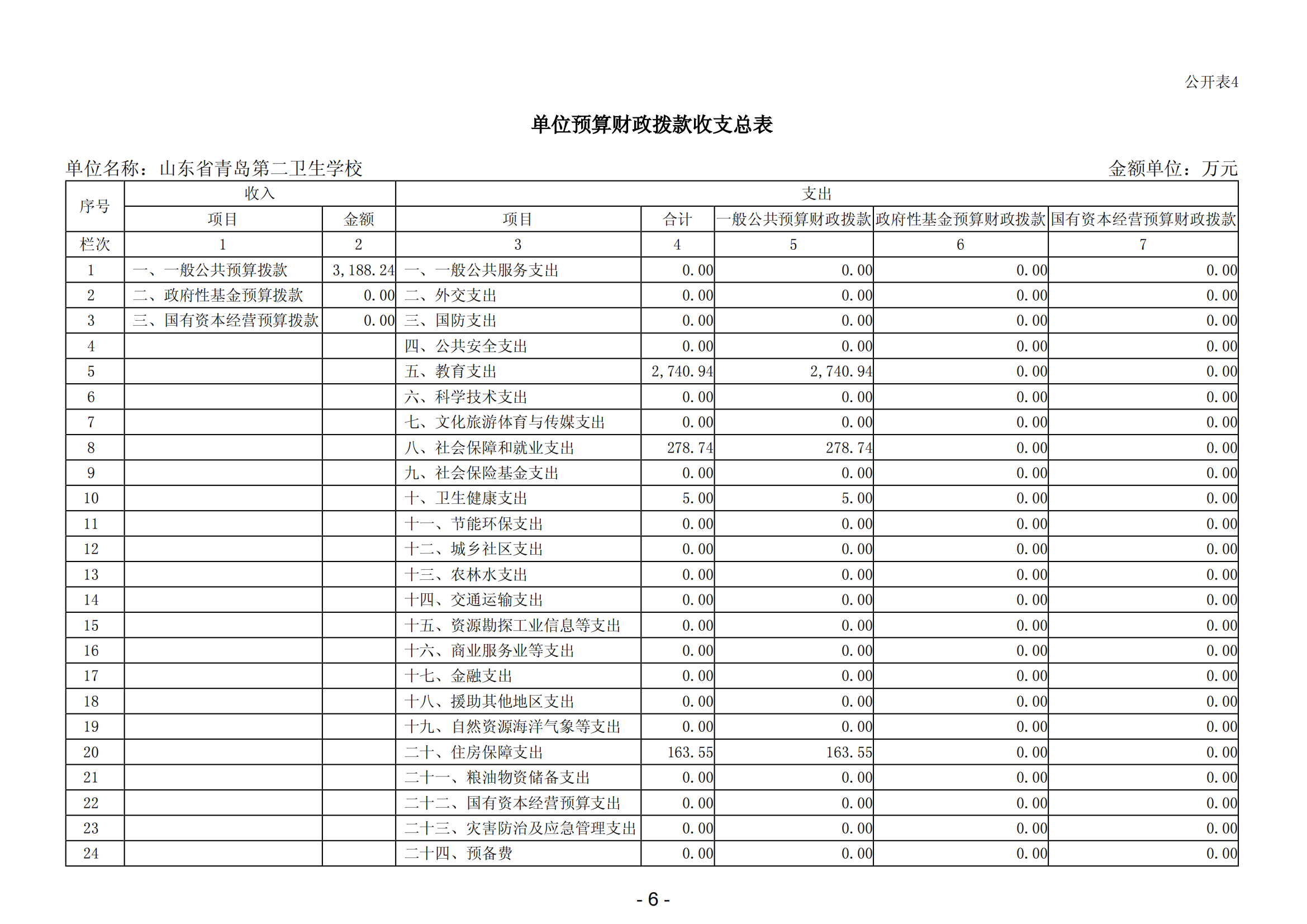 表一 單位預(yù)算收支總表