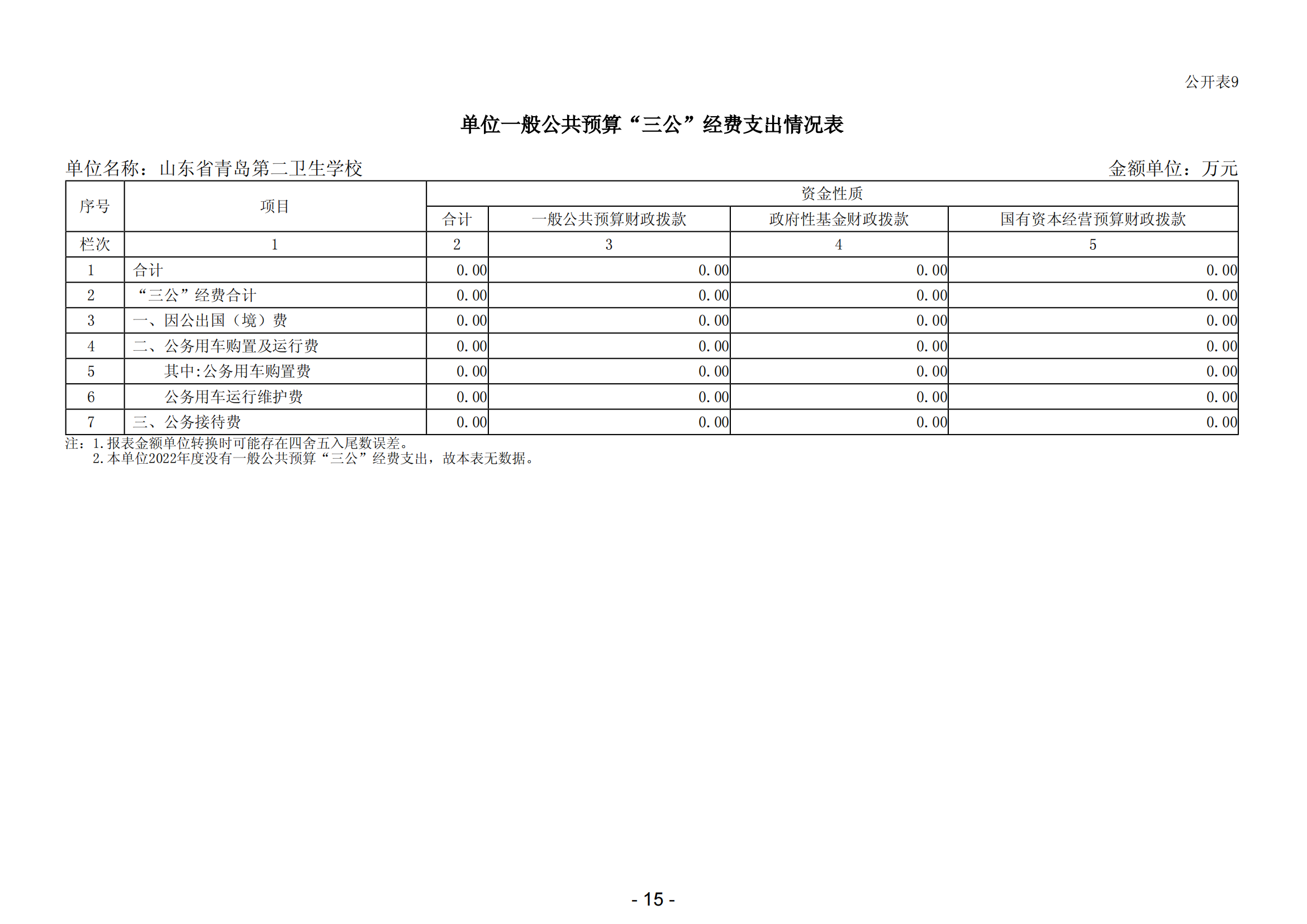 2022年,通過財(cái)政撥款安排的“三公”經(jīng)費(fèi)預(yù)算共0.00萬元,與上一年相比,增加0.00萬元,增長(zhǎng)--%。其中:因公出國(guó)(境)經(jīng)費(fèi)0.00萬元,與上一年相比,增加0.00萬 元,增長(zhǎng)--%,主要原因是:山東省青島第二衛(wèi)生學(xué)校2022年沒有財(cái)政撥款安排的“因公出國(guó)(境)”經(jīng)費(fèi)支出。公務(wù)用車購置及運(yùn)行費(fèi)0.00萬元,與上一年相比,增加0.00萬元,增長(zhǎng)--%,其中:公務(wù)用車購置費(fèi)0.00萬元,與上一年相比,增加0.00萬元,增長(zhǎng)--%,主要原因是:山東省青島第二衛(wèi)生 學(xué)校2022年沒有財(cái)政撥款安排的“公務(wù)用車購置及運(yùn)行”經(jīng)費(fèi)支 出;公務(wù)用車運(yùn)行維護(hù)費(fèi)0.00萬元,與上一年相比,增加0.00萬 元,增長(zhǎng)--%,主要原因是:山東省青島第二衛(wèi)生學(xué)校2022年沒有財(cái)政撥款安排的“公務(wù)用車購置及運(yùn)行”經(jīng)費(fèi)支出。公務(wù)接待費(fèi)0.00萬元,與上一年相比,增加0.00萬元,增長(zhǎng)0%,主要原因是:山東省青島第二衛(wèi)生學(xué)校2022年沒有財(cái)政撥款安排的“公務(wù)接待”經(jīng)費(fèi)支出。
