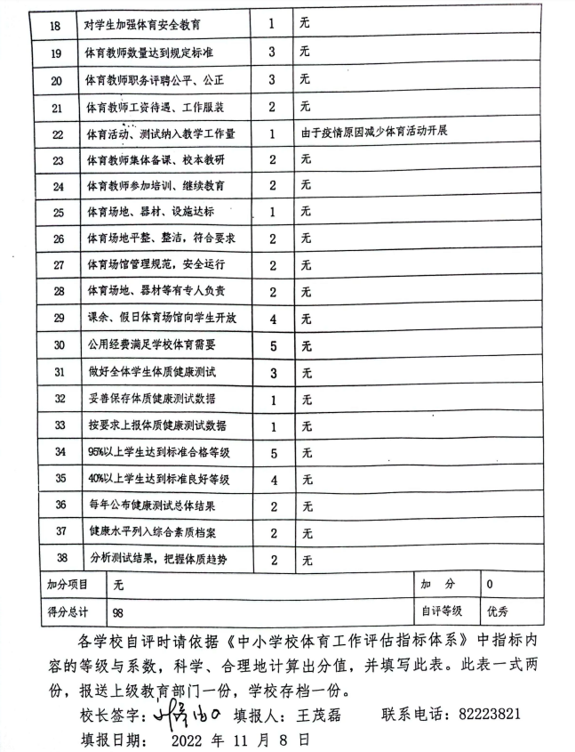 2022 年體育工作自評(píng)報(bào)告