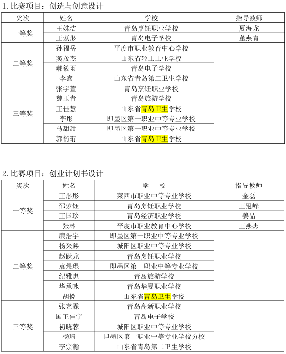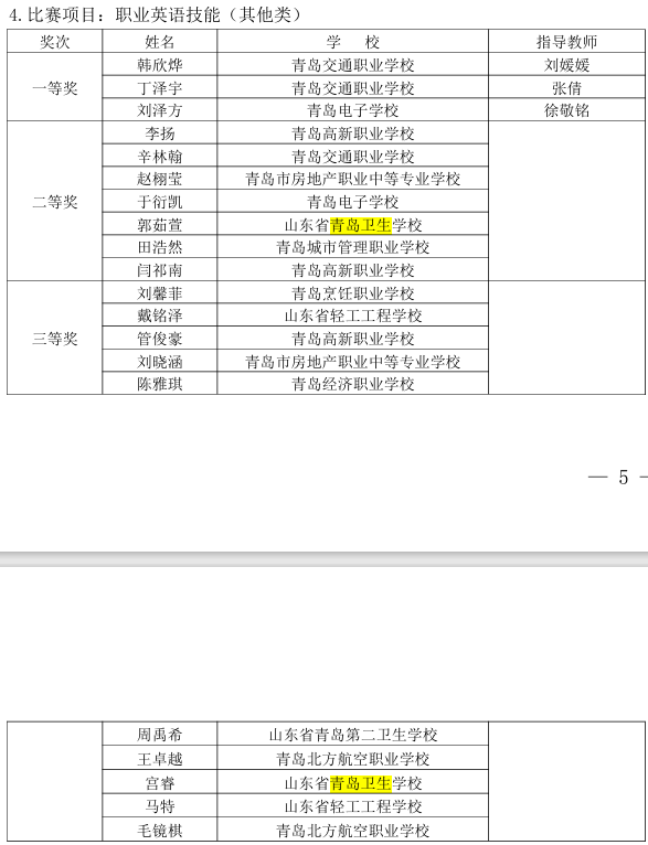 青島市教育局等5部門 關(guān)于2023年“工匠之星”青島市中等職業(yè)學(xué)校 技能大賽比賽結(jié)果的通報(bào)
