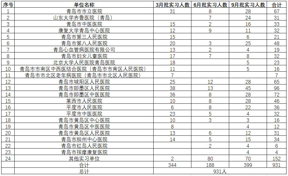 ? ? ? ? ? 目前,我校與青島市市立醫(yī)院、青島市中醫(yī)醫(yī)院、山東大學齊魯醫(yī)院(青島)、康復大學青島中心醫(yī)院、青島市同仁堂等26家島城醫(yī)療機構開展校企合作,2025至2026學年度,我校護理、康復、藥劑、口腔、影像5個專業(yè)共931名學生在上述實習單位進行為期8-10個月的臨床實習。