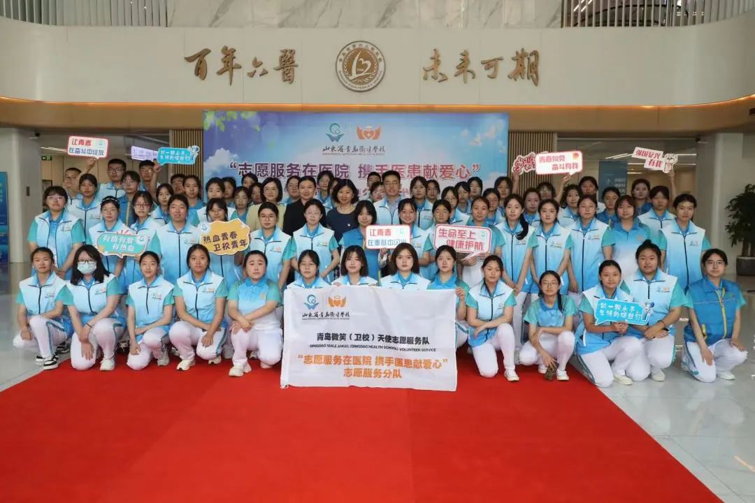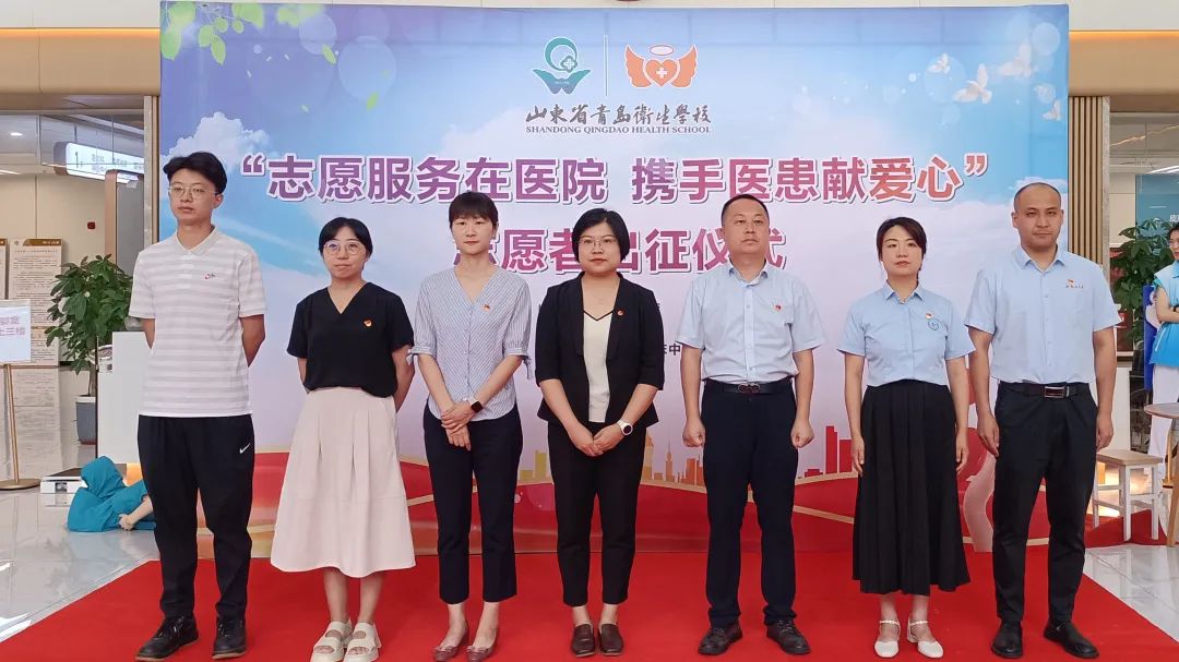 在市衛(wèi)健委“健康彩虹”志愿服務(wù)旗幟的感召下,校團(tuán)委招募近百名“微笑(衛(wèi)校)天使”志愿者加入到暑期志愿活動(dòng)當(dāng)中。 “志愿服務(wù)在醫(yī)院 攜手醫(yī)患獻(xiàn)愛(ài)心”志愿者出征儀式在市第六人民醫(yī)院舉行。青島市衛(wèi)生健康委人事處副處長(zhǎng)、團(tuán)委書記賈杉杉,學(xué)校黨委書記王秋環(huán),市第六人民醫(yī)院黨委書記、院長(zhǎng)劉振勝以及青島市市立醫(yī)院、青島市中醫(yī)院(含西院區(qū))、市第八人民醫(yī)院、市口腔醫(yī)院、市第六人民醫(yī)院、市中心血站等7家醫(yī)療單位的團(tuán)委負(fù)責(zé)同志和“微笑天使”志愿者們參加了本次活動(dòng)。近百名志愿者們將奔赴島城7所醫(yī)療機(jī)構(gòu)開展導(dǎo)醫(yī)、陪診、健康教育、無(wú)償獻(xiàn)血宣傳等工作。不僅能提高學(xué)生的綜合素質(zhì)和能力,還可以方便患者就診,提升患者的滿意度,引導(dǎo)學(xué)生在幫助他人、奉獻(xiàn)社會(huì)中為健康青島貢獻(xiàn)一份力量。