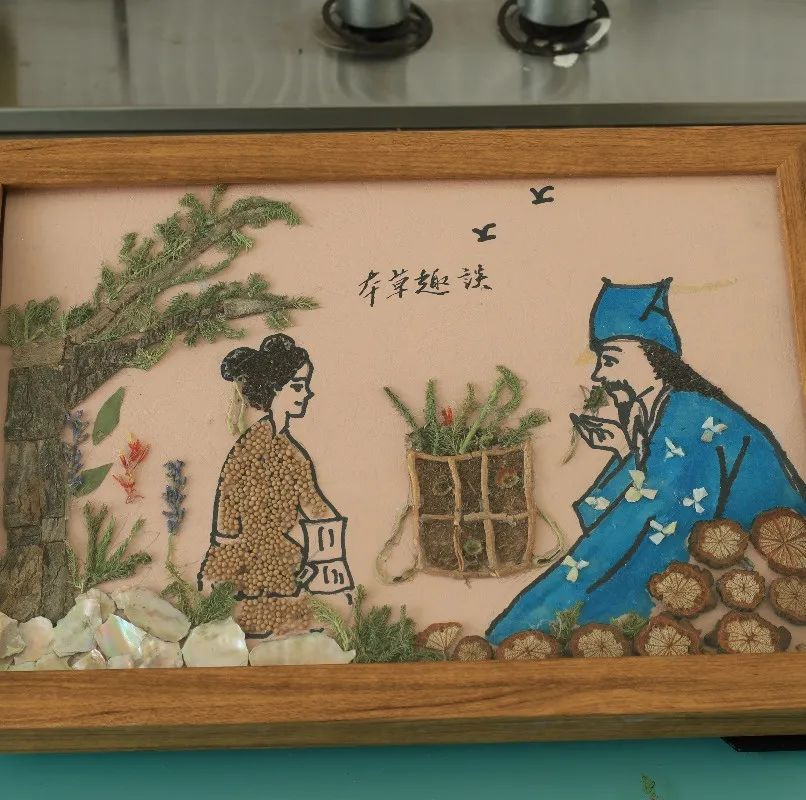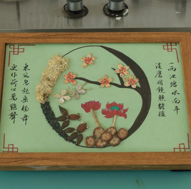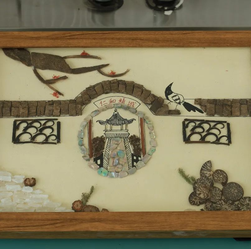由平肝潛陽(yáng)的石決明、清心安神的蓮子心組成栩栩如生的孔雀;由溫補(bǔ)肝腎的韭菜籽、散風(fēng)清熱的菊花構(gòu)成入情入境的雨后池塘;由健脾的茯苓、鎮(zhèn)痛的薰衣草、溫肺的芥子組成的圣潔美麗的南丁格爾……。