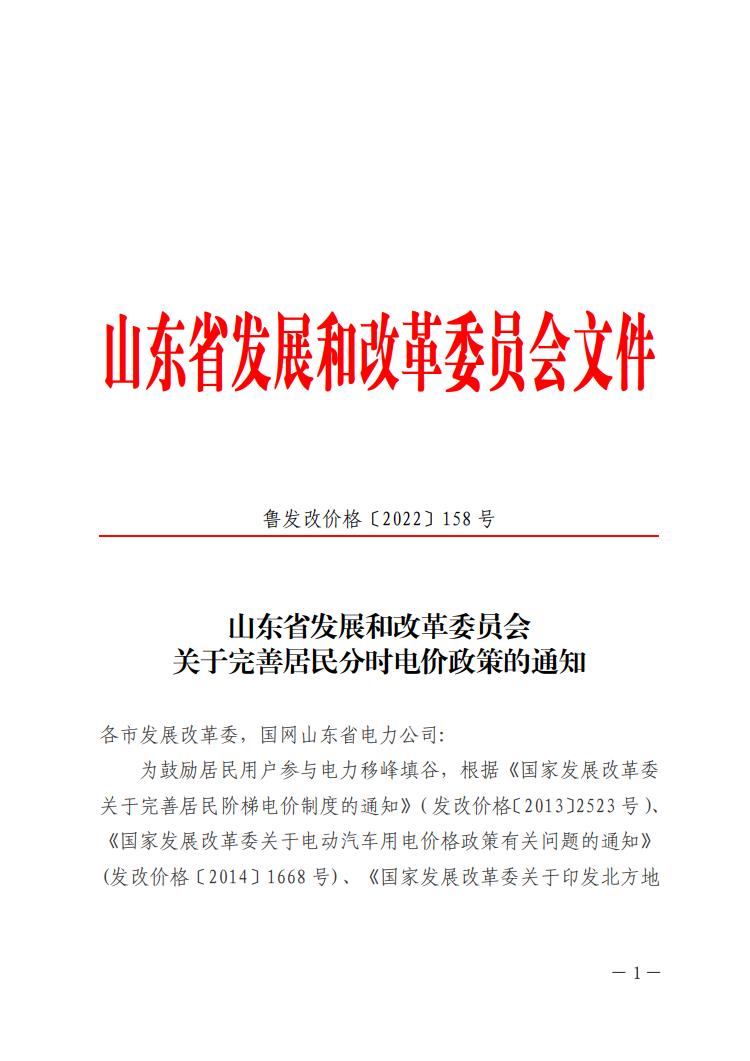 山東省發(fā)展和改革委員會(huì)關(guān)于完善居民分時(shí)電價(jià)政策的通知.pdf