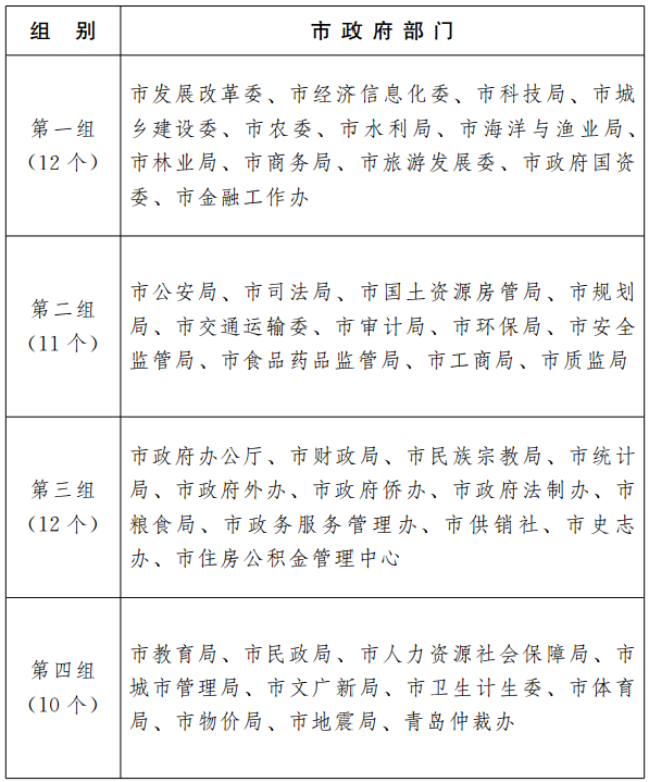 ?。ǘ┙M織市政府部門負責人述職報告會。組織47個市政府部門進行年終述職,其中,市政府研究室、市人防辦在市級機關(guān)內(nèi)部進行述職和評議,其他45個部門進行公開述職,共分為4個組,每組用時約半天,每個部門限時10分鐘。述職部門主要報告本年度業(yè)務(wù)職能目標等主要工作完成情況、市民意見建議辦理情況、存在問題及明年打算等,報告內(nèi)容要突出群眾關(guān)切、市民關(guān)注的事項,更接地氣,更能回應(yīng)社會熱點。在述職報告會前向社會公開各部門的工作職責、年度目標、書面述職報告等,并通過各大媒體及相關(guān)微信公眾號對各部門一年主要工作進行展示。述職報告會將通過青島電視臺、青島人民廣播電臺、青島網(wǎng)絡(luò)廣播電視臺、青島新聞網(wǎng)、掌上青島和愛青島手機客戶端等全程直播。