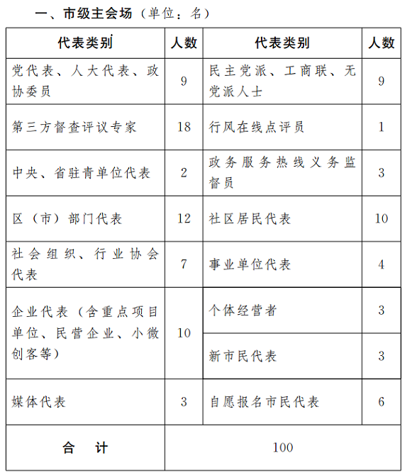 ?。ㄈ┙邮苋f名市民代表評議。通過隨機抽取、組織推薦和自愿報名相結(jié)合的方式,進一步優(yōu)化市民代表構(gòu)成,邀請1萬名市民代表分別在市級主會場以及各區(qū)(市)和青島高新區(qū)分會場,現(xiàn)場聽取各部門述職報告,采用無記名的方式現(xiàn)場填寫并提交評議票,每組發(fā)放評議票2500張。同時,組織填寫社情民意調(diào)查問卷等。市民代表的評議票當場回收、密封,主會場與分會場評議票混合后由第三方匯總統(tǒng)計,評議結(jié)果計入市政府各部門全市綜合考核成績。