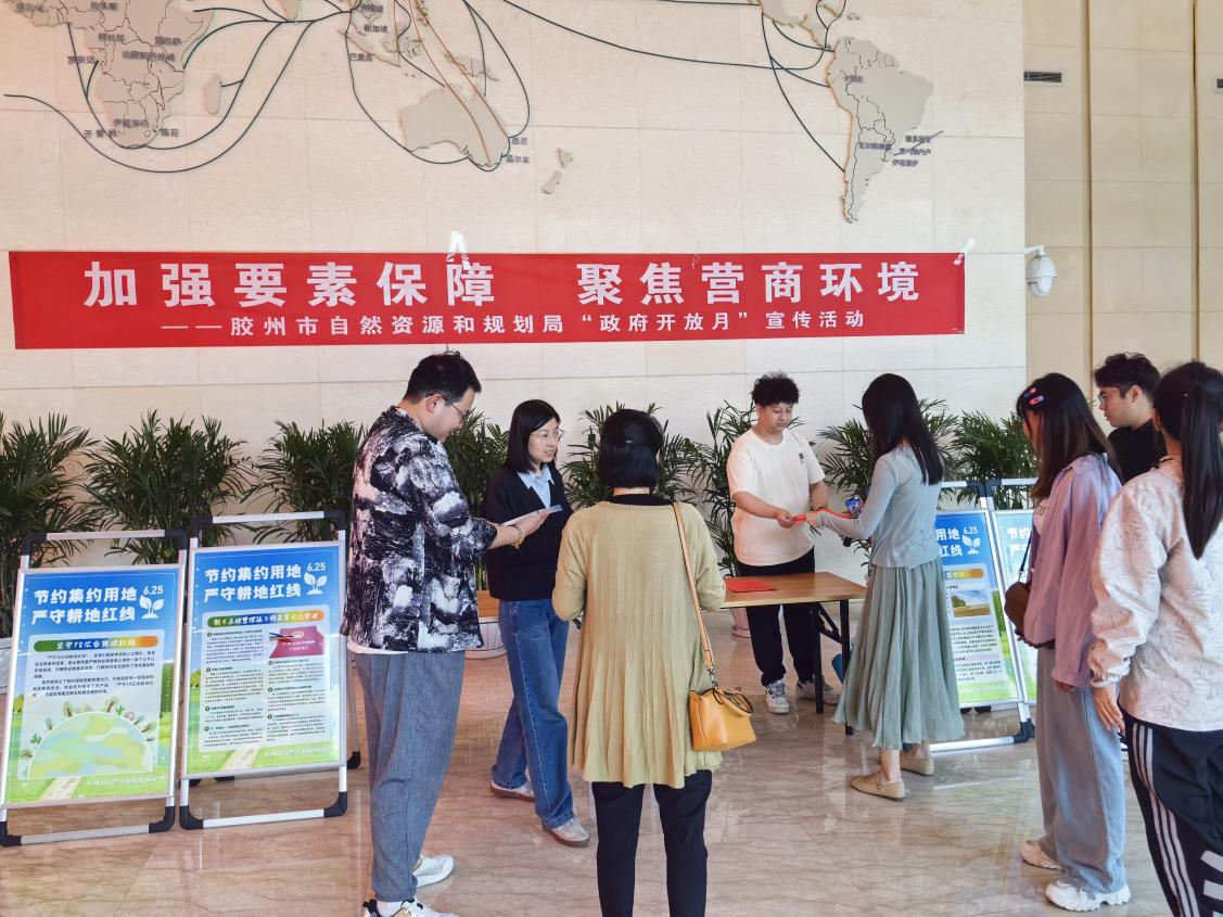 為進(jìn)一步推進(jìn)政務(wù)公開工作,增強(qiáng)政民互動(dòng)交流實(shí)效,打造陽光開放政府,膠州市自然資源和規(guī)劃局于2024年5月22日在膠州市會議中心規(guī)劃館,開展了主題為“加強(qiáng)要素保障 聚焦?fàn)I商環(huán)境”的“政府開放月”宣傳活動(dòng),主動(dòng)邀請市民群眾企業(yè)代表參加。市自然資源和規(guī)劃局相關(guān)業(yè)務(wù)科室業(yè)務(wù)骨干、市民群眾及部分企業(yè)代表共16人參加了宣傳活動(dòng)。此次宣傳活動(dòng)搭建政府與群眾之間的溝通橋梁,全面宣傳解讀惠企利民政策措施,充分了解群眾訴求,聽取意見建議,提高群眾獲得政策便利度和實(shí)效性,取得了較好的成效。