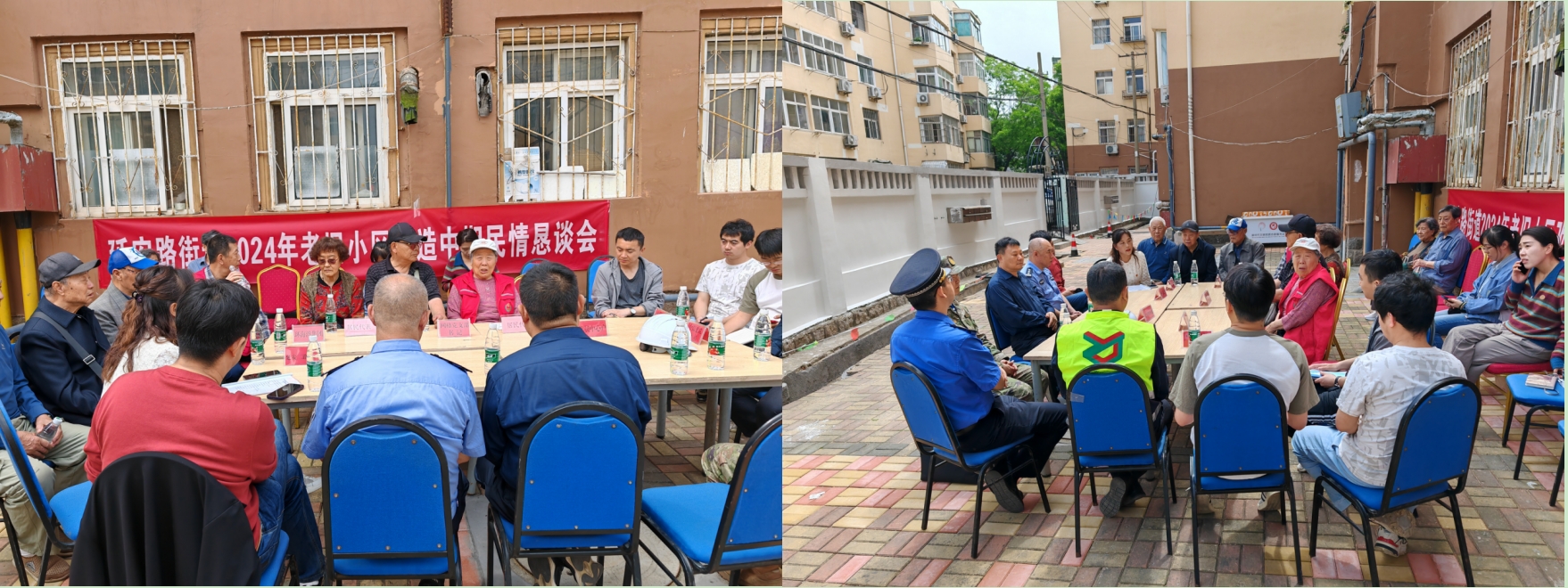 二、老舊街區(qū)改造懇談會。為進一步廣泛聽取民意,保障群眾知情權,聚集群眾智慧,積極解決老舊小區(qū)改造過程中的實際問題,5月30日,延安路街道老舊小區(qū)改造指揮部組織街道派出所、環(huán)海灣集團、中嘉建筑公司、中景設計公司、同網(wǎng)格黨支部書記、黨員中心戶、居民代表在明霞路24號院中舉辦“老舊小區(qū)改造中期民情懇談會”,切實把老舊小區(qū)改造工作好事辦好,實事辦實。