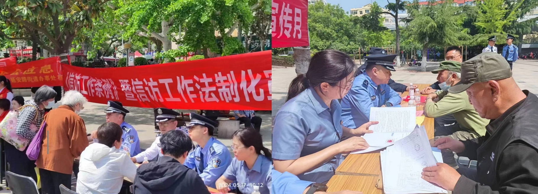 三、信訪法制化宣傳活動。5月17日,延安路街道邀請市公安局信訪處、公安市北分局、市北法院、市北檢察院、區(qū)教體局等政法及駐街機關、企事業(yè)單位共同舉辦《信訪工作條例》暨信訪工作法制化宣傳進社區(qū)活動?,F(xiàn)場發(fā)放100余份“致廣大市民朋友的一封信”、30余本《信訪工作條例》讀本,解答群眾問題及法律咨詢30余次。提升依法解決合理訴求的能力水平,營造辦事依法、遇事找法、解決問題用法、化解矛盾靠法的良好環(huán)境,不斷提升為民謀利、為民辦事、為民解憂的能力水平,以信訪工作實效增強人民群眾獲得感、幸福感和安全感。