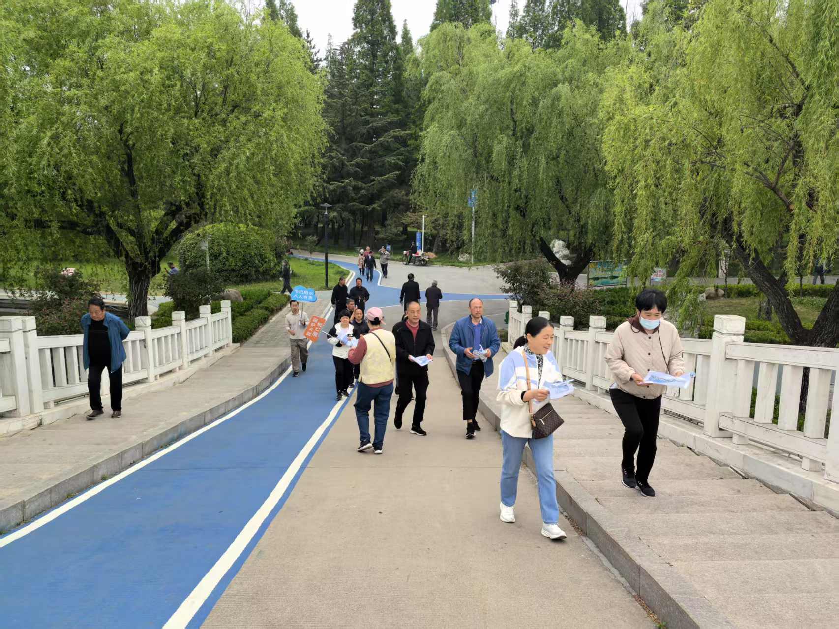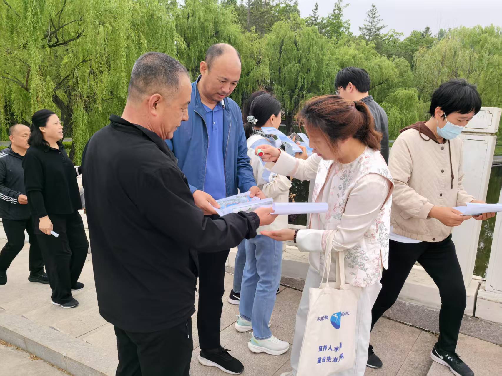 ? ? ? ? 月湖公園內(nèi)百花盛開,姹紫嫣紅,微風(fēng)吹拂柳枝,湖面泛起層層漣漪。活動(dòng)開始后,40余名水利機(jī)關(guān)工作人員呼吸著清新的空氣,感受著自然陽光,你追我趕,相互鼓勵(lì)、相互加油。本次健步走活動(dòng)全程約4公里,沿途共設(shè)有4個(gè)打卡點(diǎn),每到一個(gè)打卡點(diǎn)可獲取一個(gè)點(diǎn)贊蓋章,集齊4個(gè)蓋章才算有效走完全程。在活動(dòng)沿途,還通過高舉節(jié)水標(biāo)語展牌、發(fā)放節(jié)水宣傳彩頁向市民游客積極普及節(jié)水知識(shí),還設(shè)置節(jié)水知識(shí)問答吸引更多公眾參與其中,獲取知識(shí)、增進(jìn)互動(dòng),有效提高社會(huì)公眾節(jié)水知曉度。整個(gè)過程中歡聲笑語,氣氛輕松活躍。
