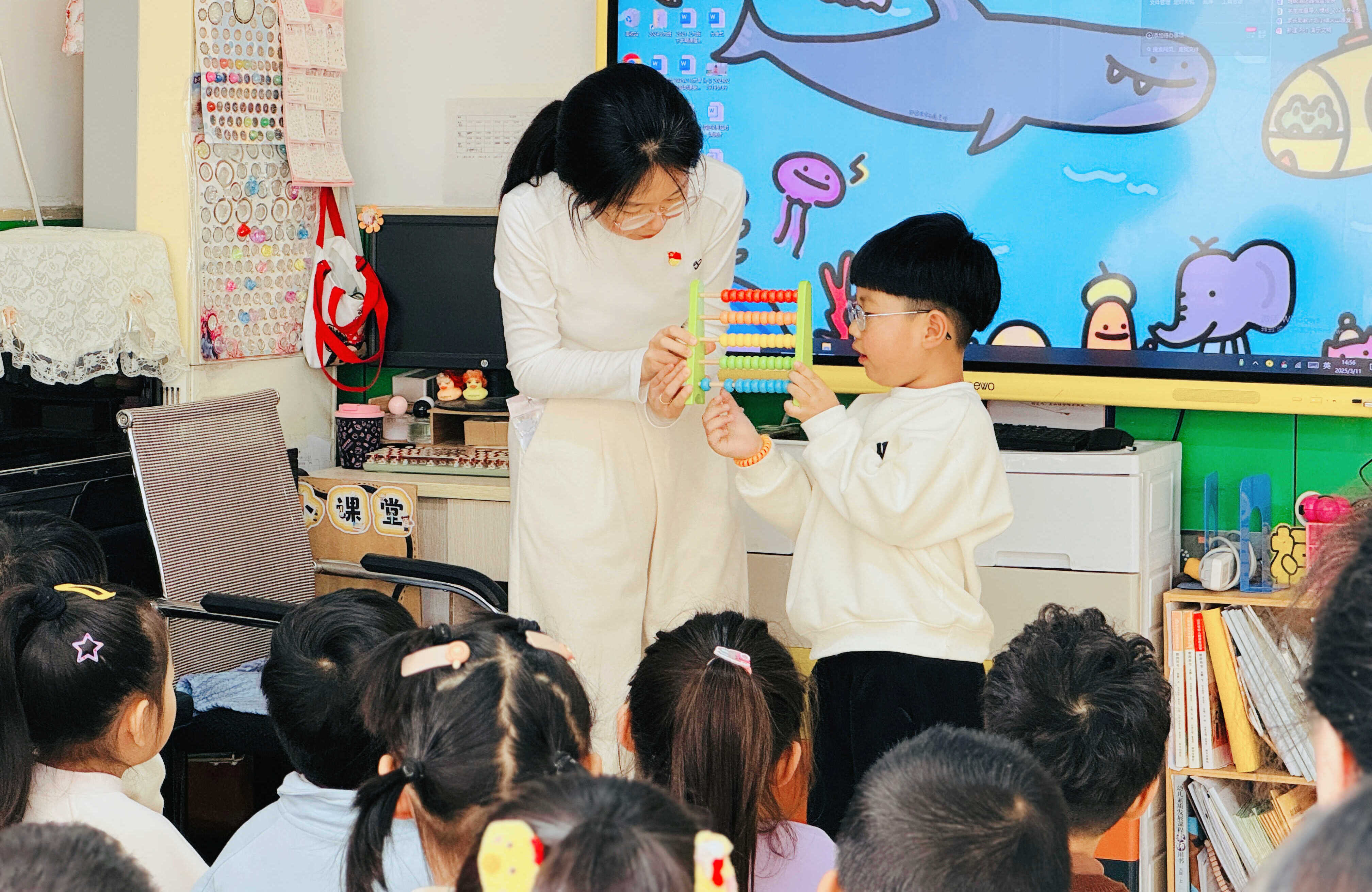 青島洛陽路第二小學(xué)教師正與探校幼兒熱情互動(dòng)