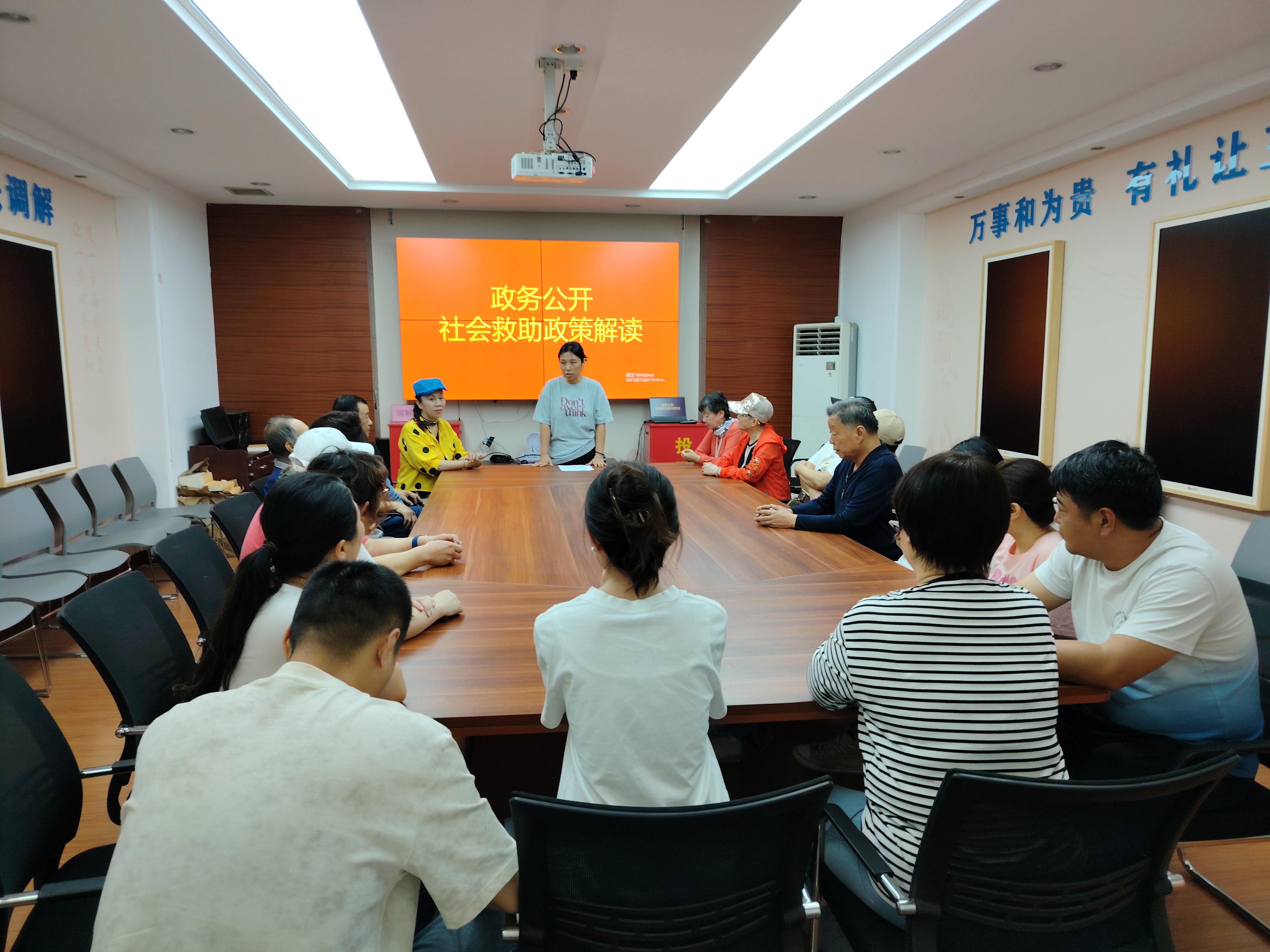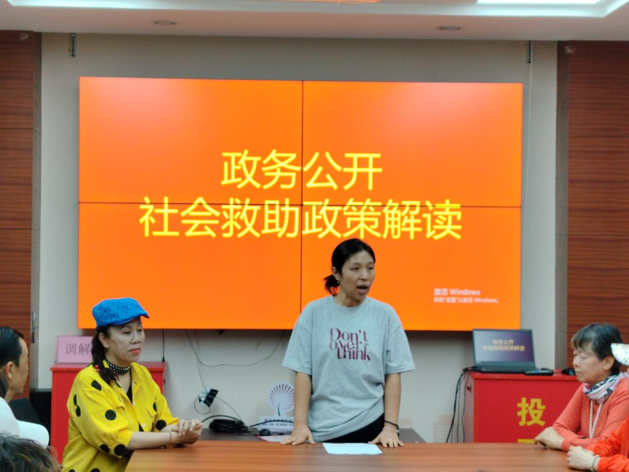為認(rèn)真貫徹落實(shí)國(guó)家和省、市、區(qū)政務(wù)公開(kāi)工作要點(diǎn)關(guān)于常態(tài)化開(kāi)展政府開(kāi)放日活動(dòng)的部署要求,暢通政民互動(dòng)渠道,提升政務(wù)公開(kāi)工作水平,金門(mén)路街道通過(guò)線上、線下相結(jié)合的形式,組織開(kāi)展“政府開(kāi)放日”活動(dòng),不斷提升群眾知曉度、滿意度。其中5月23日,金門(mén)路街道在天山社區(qū)開(kāi)展了政府開(kāi)放日社會(huì)救助政策解讀日活動(dòng)?;顒?dòng)現(xiàn)場(chǎng)居民參觀了社區(qū)政務(wù)服務(wù)慧客廳,聽(tīng)取了相關(guān)社會(huì)救助政策宣講,現(xiàn)場(chǎng)共有20余名居民參加活動(dòng)。